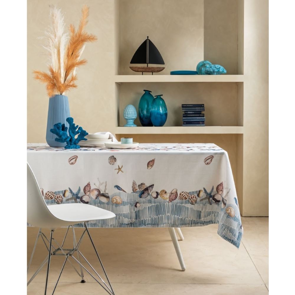 Tablecloths in stain-resistant and waterproof yarn: soft, nice to the touch, 100% made in Italy, to furnish interiors with style and functionality. With exclusive decorations, they are available for 4, 6, 8, 10 or 12 places or as 2-place runners and they can be combined with napkins of plain linen and cotton.