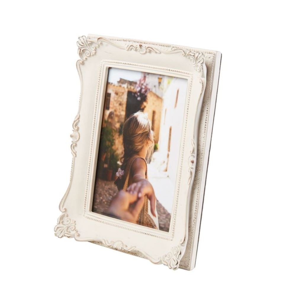 Portafoto rettangolare in resina dall’effetto anticato e con piccoli riflessi dorati. Una finestra sui ricordi più importanti, per vestire di emozioni la casa.