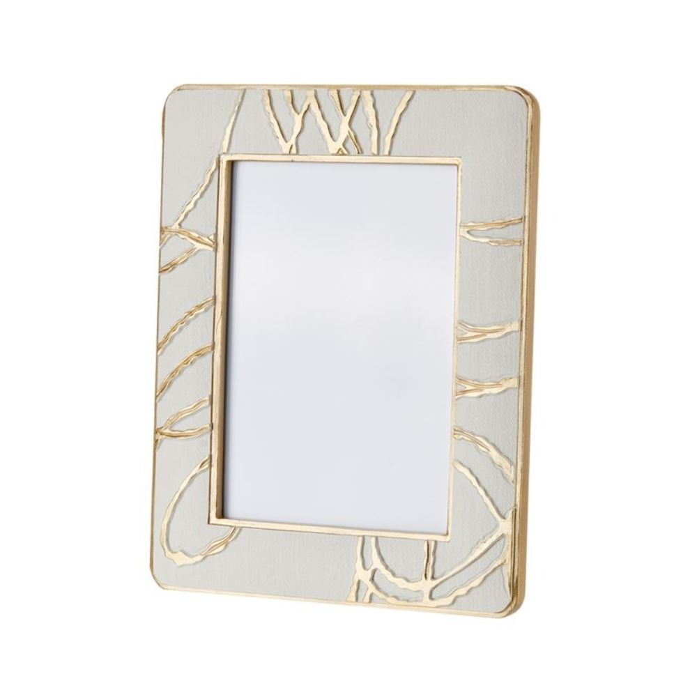 Portafoto rettangolare in resina con prezioso decoro. Linee dorate che vestono di eleganza la cornice per rendere ancora più indimenticabile ogni ricordo. Posizionabile in verticale o in orizzontale.