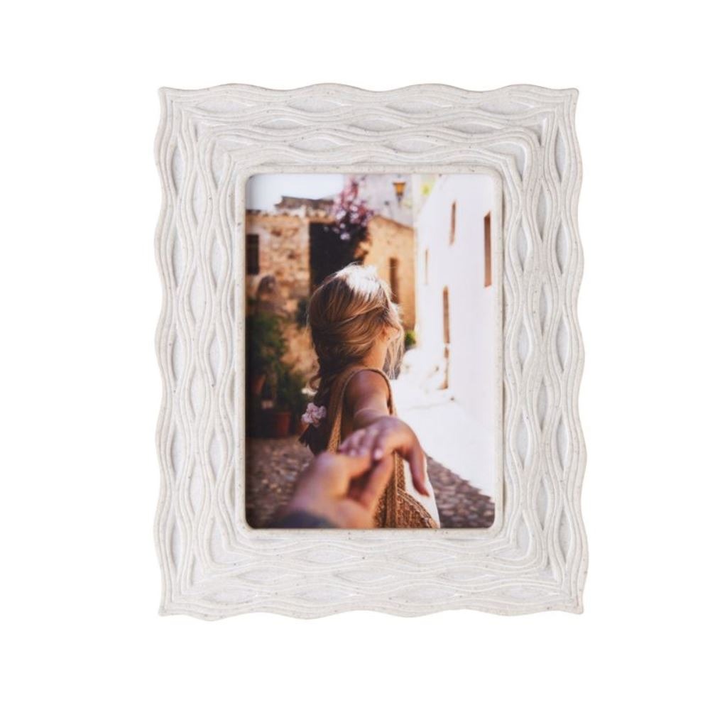 Portafoto rettangolare in resina. Pattern materico e linee classiche che vestono di stile ogni ricordo. Perfetto per chi ama un design iconico.