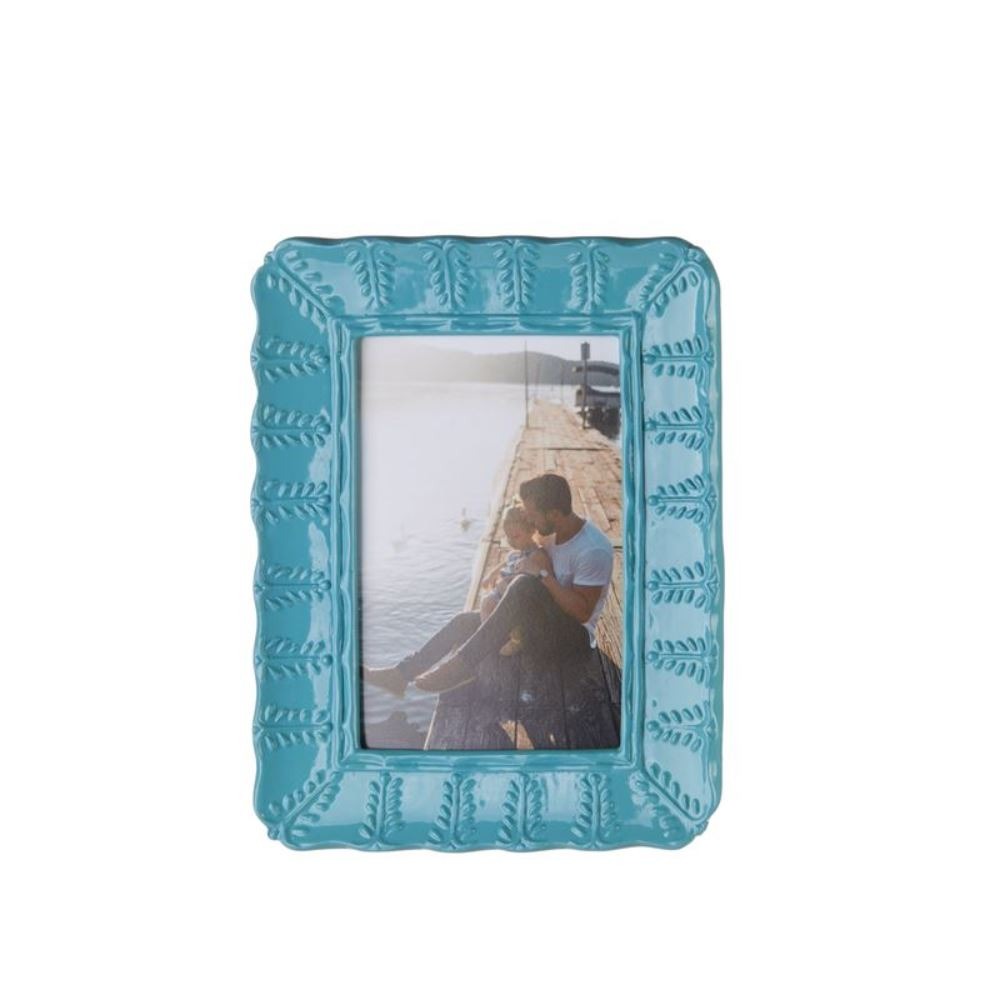 Portafoto rettangolare in resina. Grazie al motivo fogliato e al colore d’impatto, questa cornice è perfetta per gli amanti di un arredamento allegro e coinvolgente.