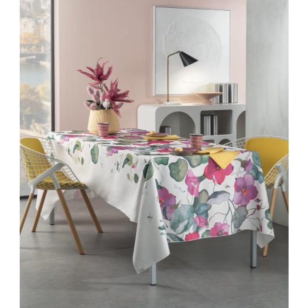Tablecloths in stain-resistant and waterproof yarn: soft, nice to the touch, 100% made in Italy, to furnish interiors with style and functionality. With exclusive decorations, they are available for 4, 6, 8, 10 or 12 places or as 2-place runners and they can be combined with napkins of plain linen and cotton.