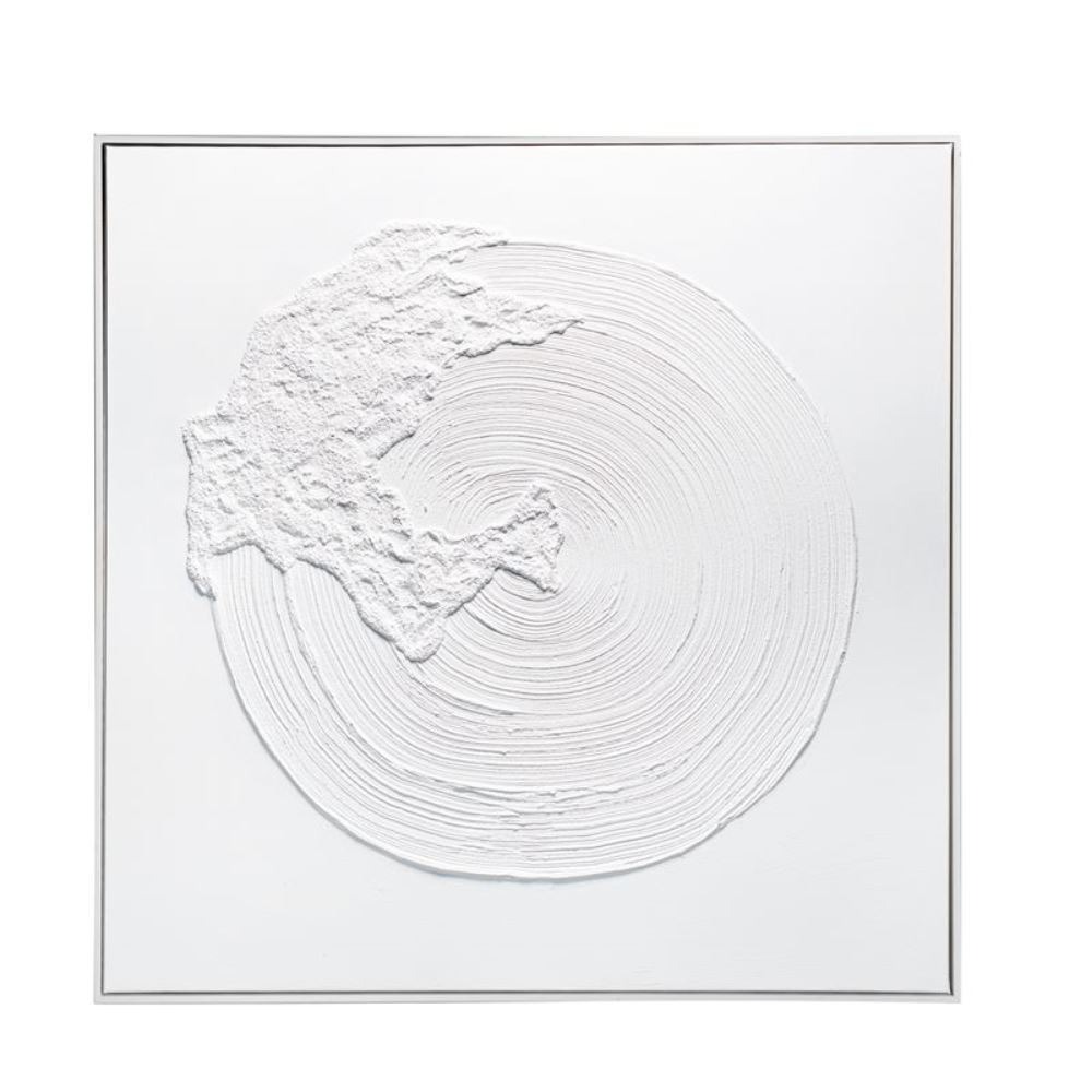 Quadro con cornice realizzato con la tecnica della pittura acrilica su tela. Decoro geometrico con dettagli materici in rilievo per creare un moderno gioco di ombre. Tutti i quadri dipinti con la tecnica acrilico su tela sono fatti a mano.