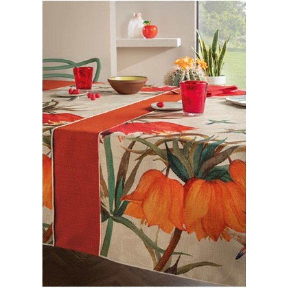Tablecloths in stain-resistant and waterproof yarn: soft, nice to the touch, 100% made in Italy, to furnish interiors with style and functionality. With exclusive decorations, they are available for 4, 6, 8, 10 or 12 places or as 2-place runners and they can be combined with napkins of plain linen and cotton.