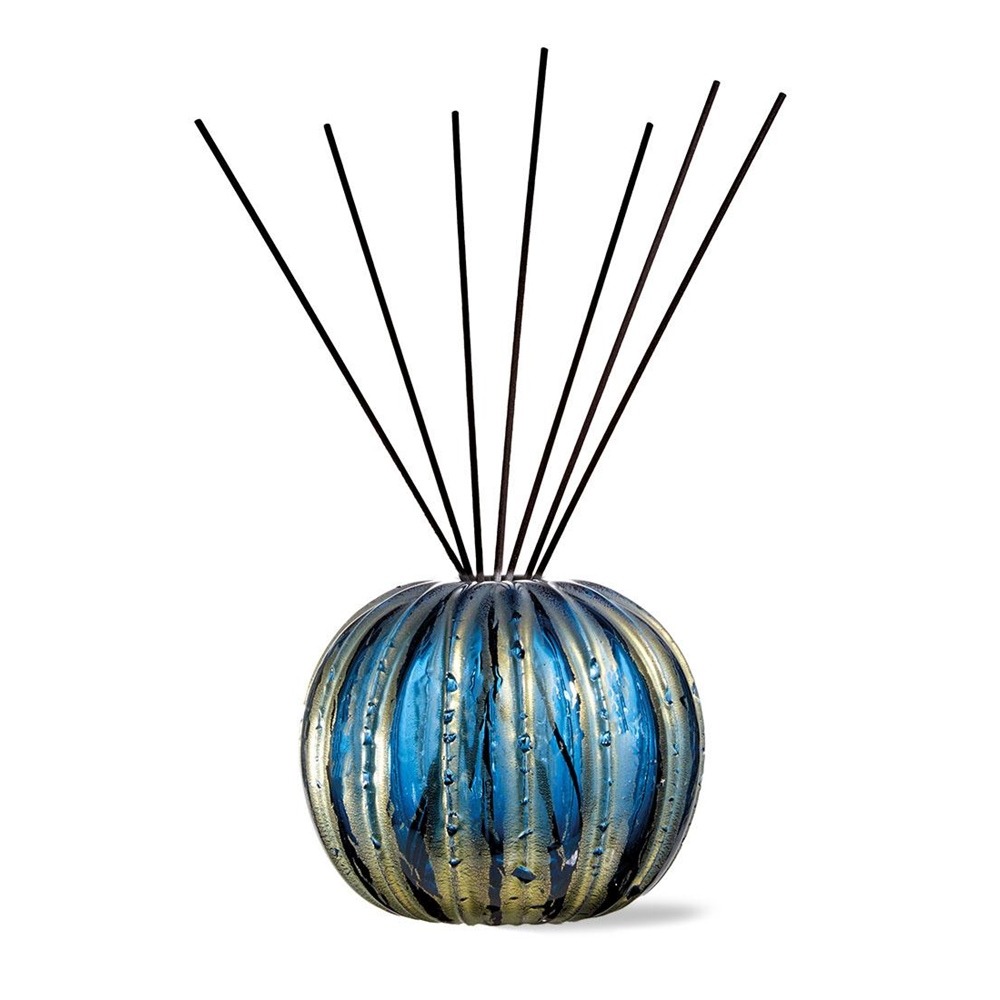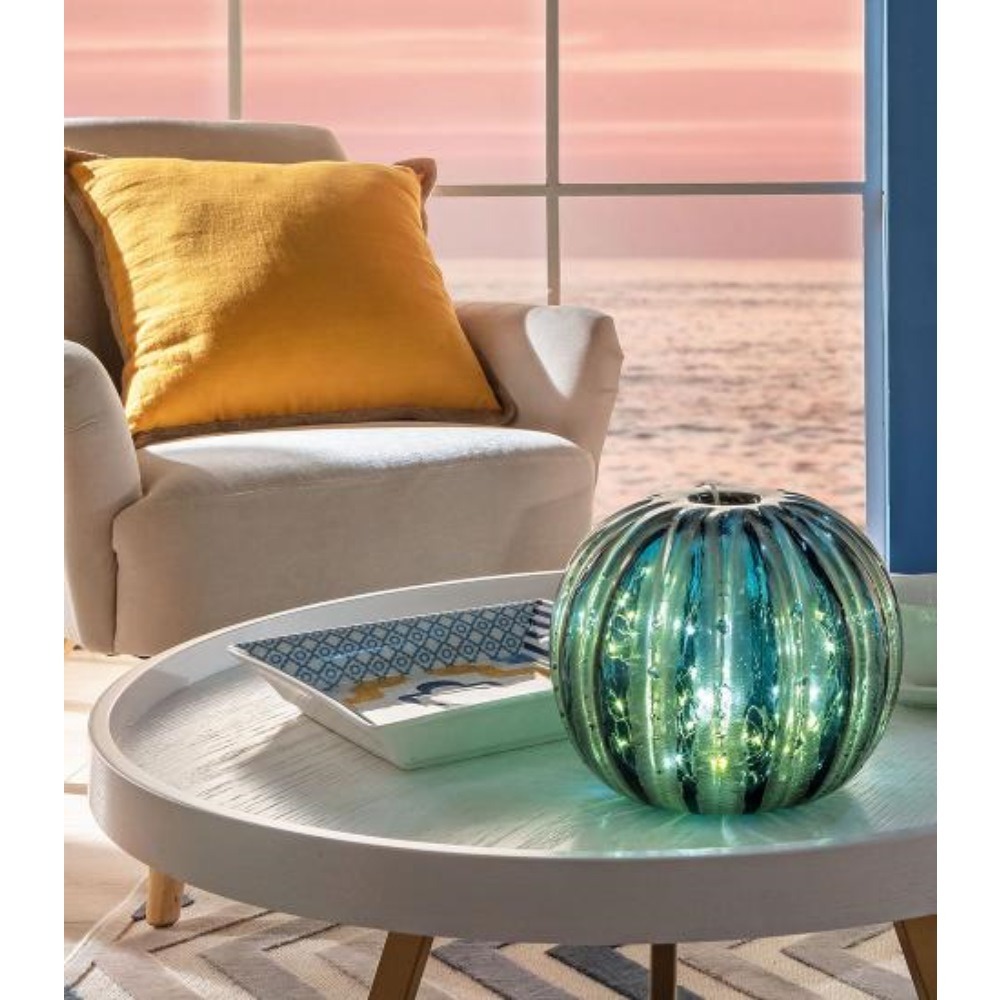 Sfera decorativa in vetro con cromie e texture uniche. Arreda ogni ambiente ed è sempre elegante in ogni sua interpretazione: vaso, profumatore, elemento decorativo o luce. Comprende un tappo dal design moderno in vetro trasparente.