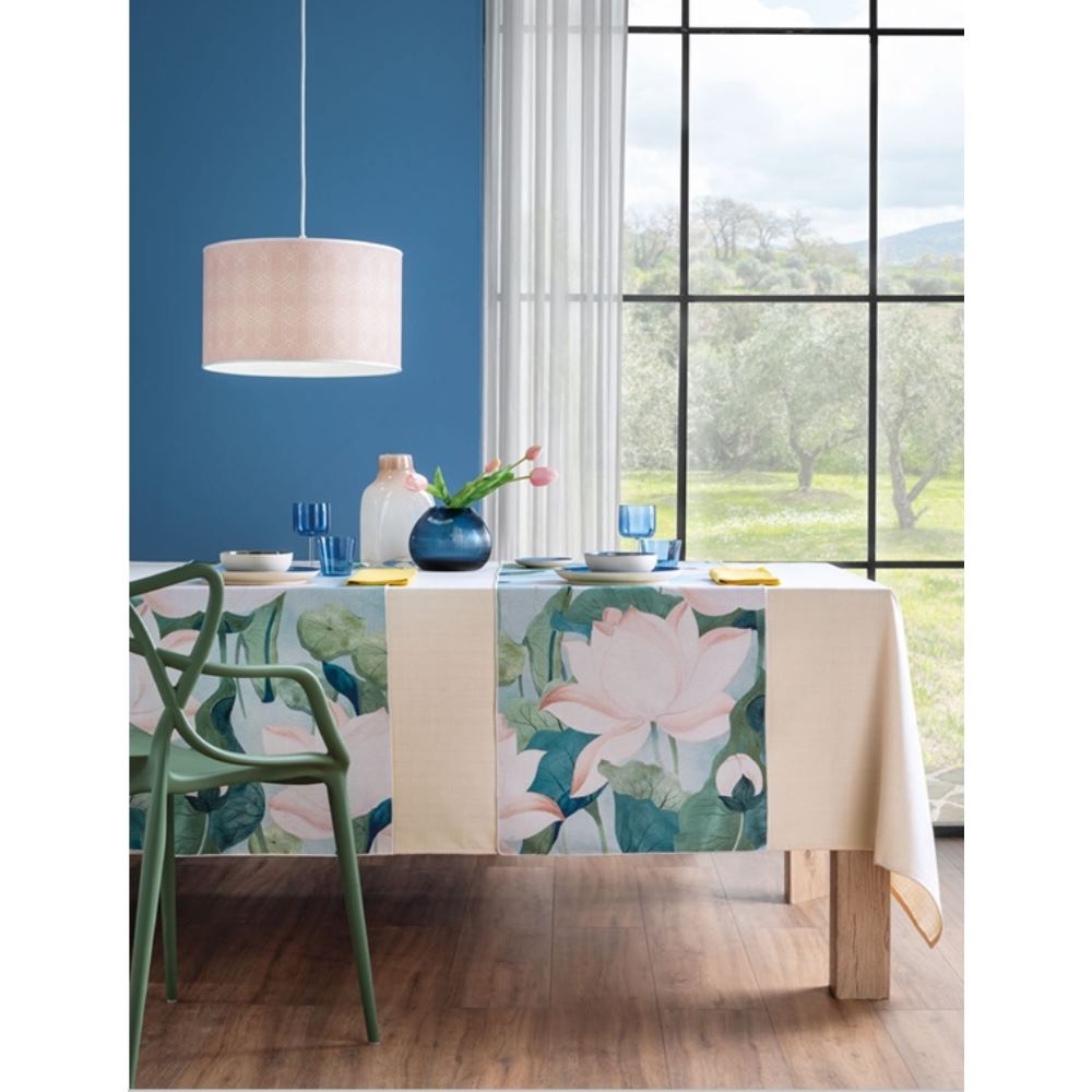 Tablecloths in stain-resistant and waterproof yarn: soft, nice to the touch, 100% made in Italy, to furnish interiors with style and functionality. With exclusive decorations, they are available for 4, 6, 8, 10 or 12 places or as 2-place runners and they can be combined with napkins of plain linen and cotton.