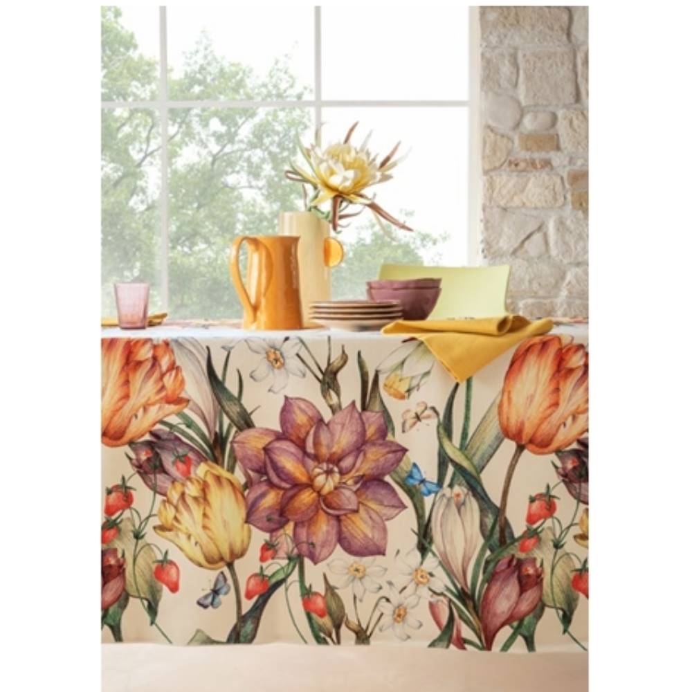Tablecloths in stain-resistant and waterproof yarn: soft, nice to the touch, 100% made in Italy, to furnish interiors with style and functionality. With exclusive decorations, they are available for 4, 6, 8, 10 or 12 places or as 2-place runners and they can be combined with napkins of plain linen and cotton.
