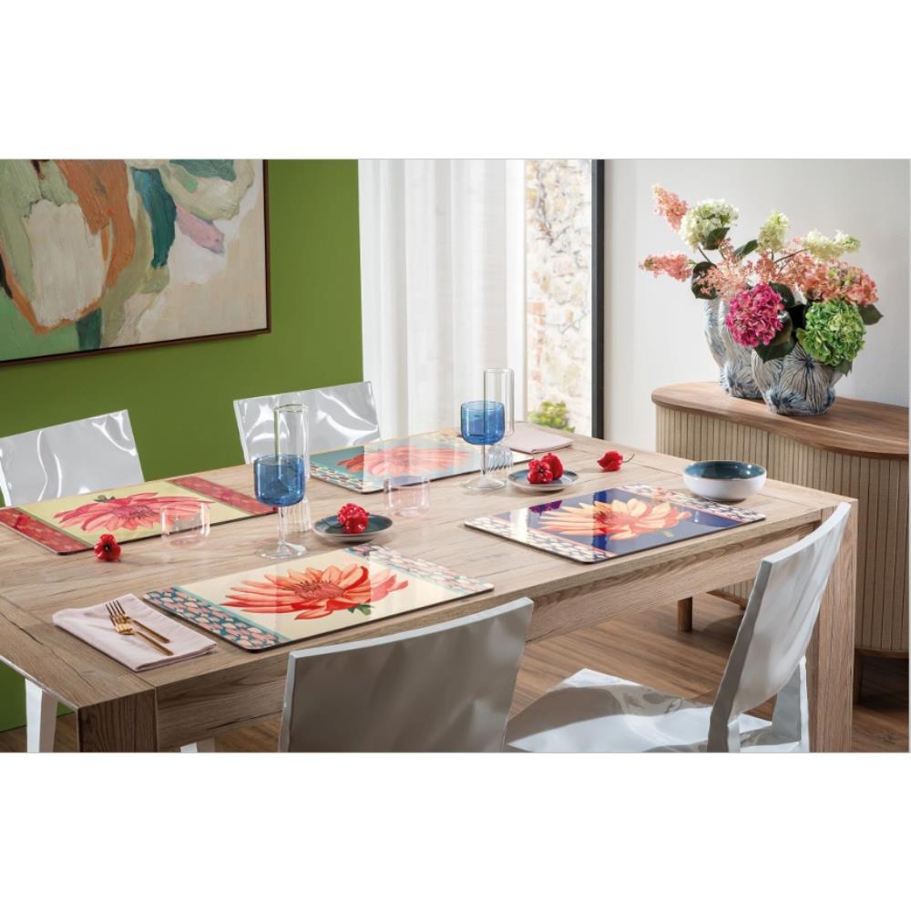 Rigid placemats of polycarbonate and wood fibre with non-slip bottom made of cork. 100% made in Italy, round or rectangular, they can be combined according to their shape, decoration or colour. Perfect for embellishing the table with elegant liveliness: for a convivial lunch, for a summer dinner, for a romantic breakfast on the veranda.