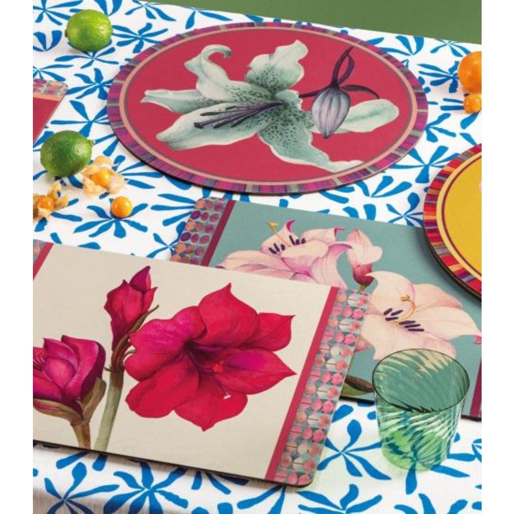 Tovaglietta rigida rettangolare ottanio con giglio orientale. Un dettaglio che rende preziosa la tavola tutti i giorni. Tante composizioni possibili per una mise en place variopinta: 100% Made in Italy si possono abbinare per forma, decoro o per colore.