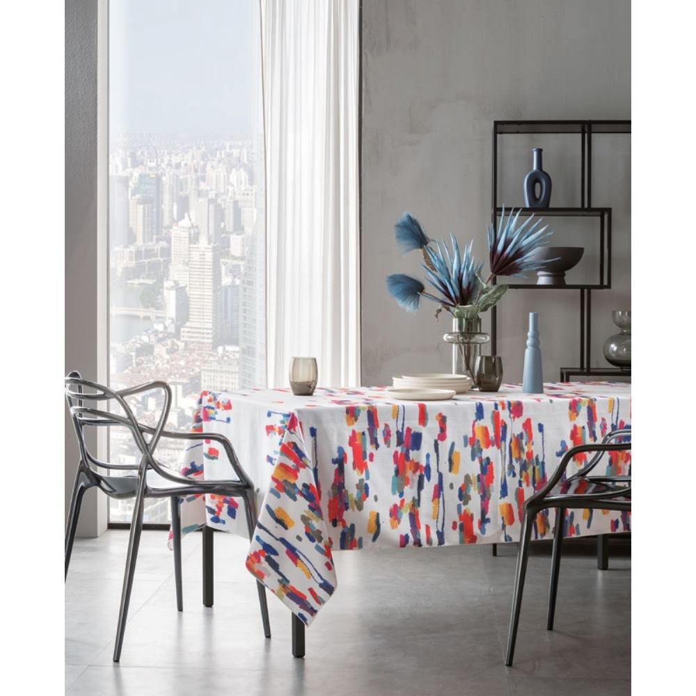 Tablecloths in stain-resistant and waterproof yarn: soft, nice to the touch, 100% made in Italy, to furnish interiors with style and functionality. With exclusive decorations, they are available for 4, 6, 8, 10 or 12 places or as 2-place runners and they can be combined with napkins of plain linen and cotton.