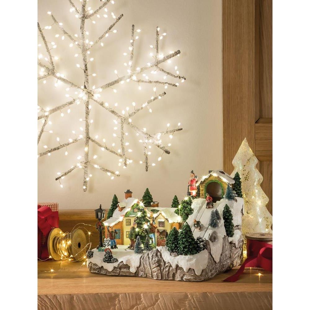 L’Oca Nera – VILLAGGIO CON PISTA DA SCI , MUSICA, MOVIMENTO E LEDS cm 30x26x21h ANDIAMO A SCIARE