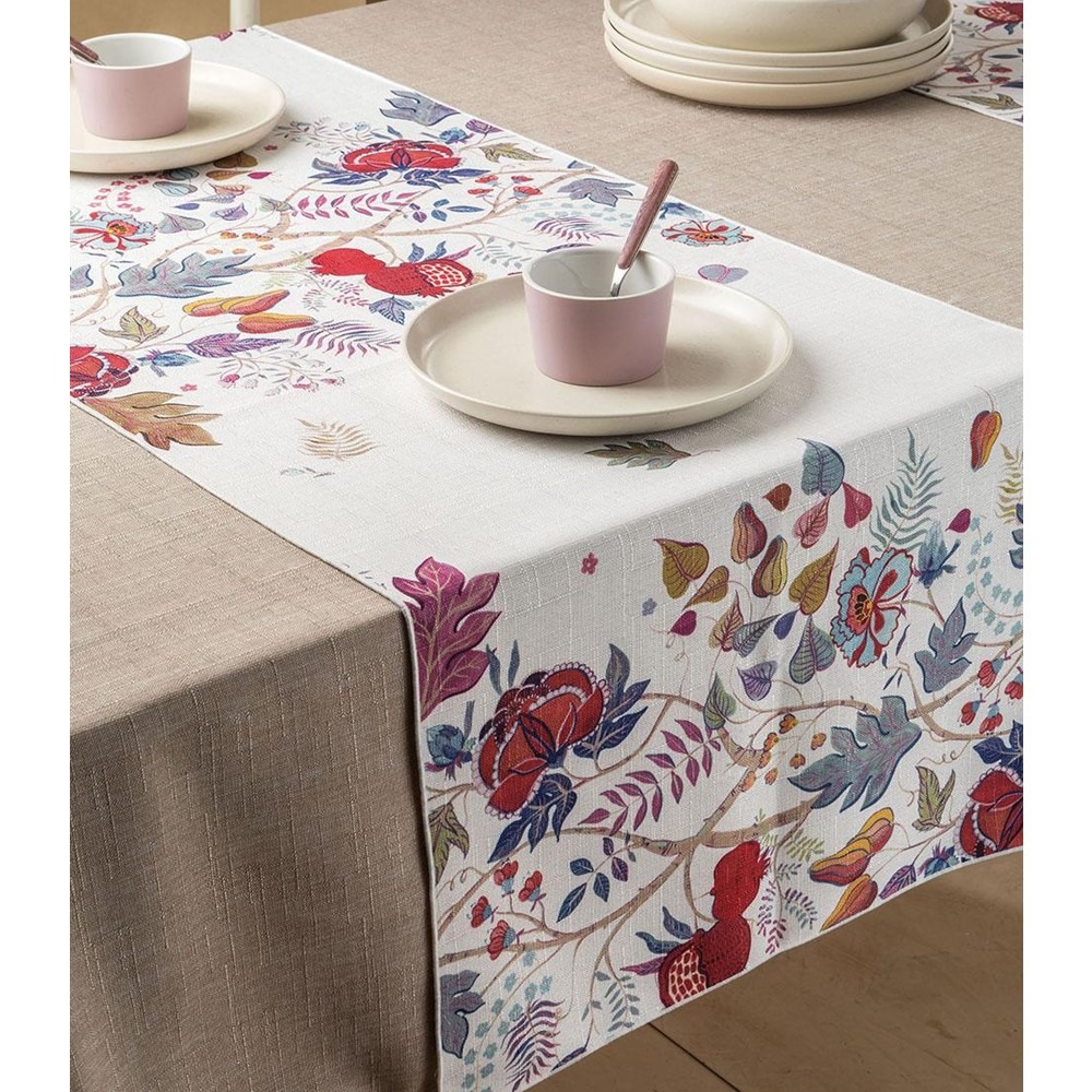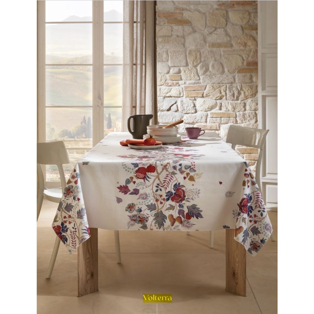 Tablecloths in stain-resistant and waterproof yarn: soft, nice to the touch, 100% made in Italy, to furnish interiors with style and functionality. With exclusive decorations, they are available for 4, 6, 8, 10 or 12 places or as 2-place runners and they can be combined with napkins of plain linen and cotton.