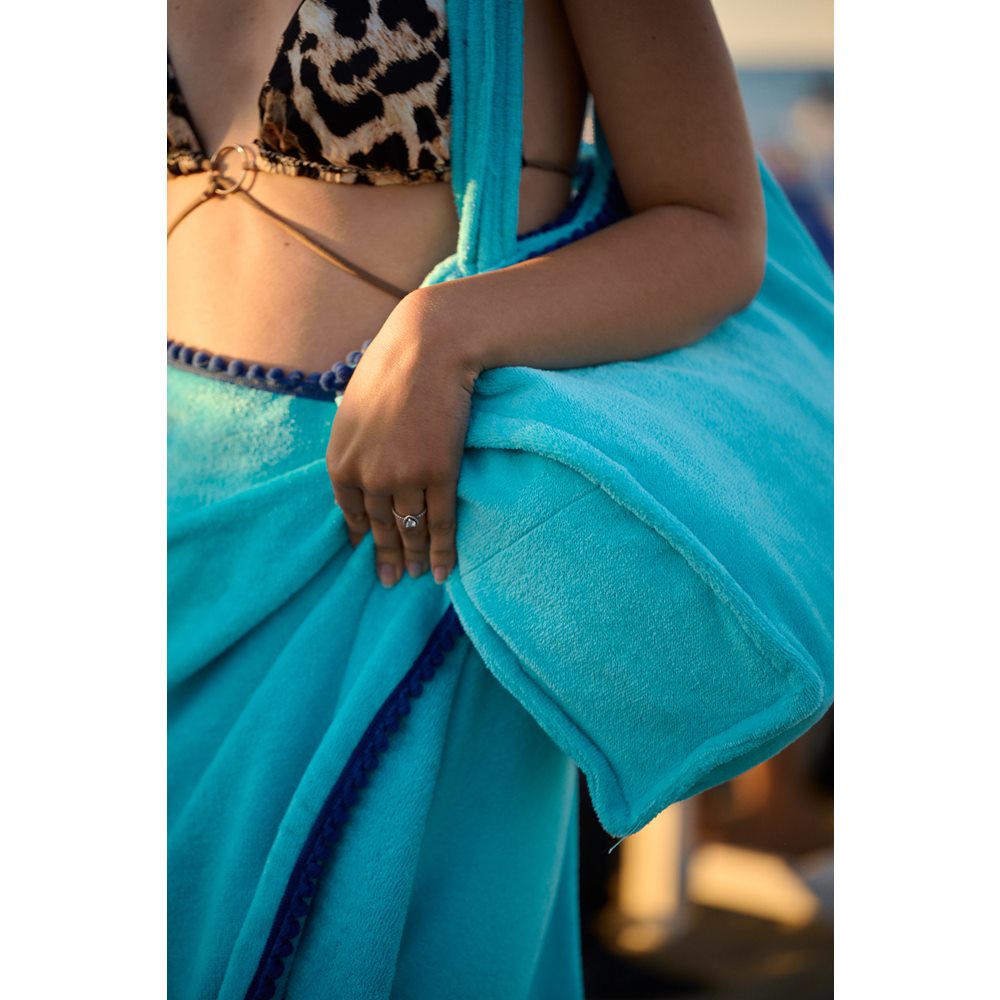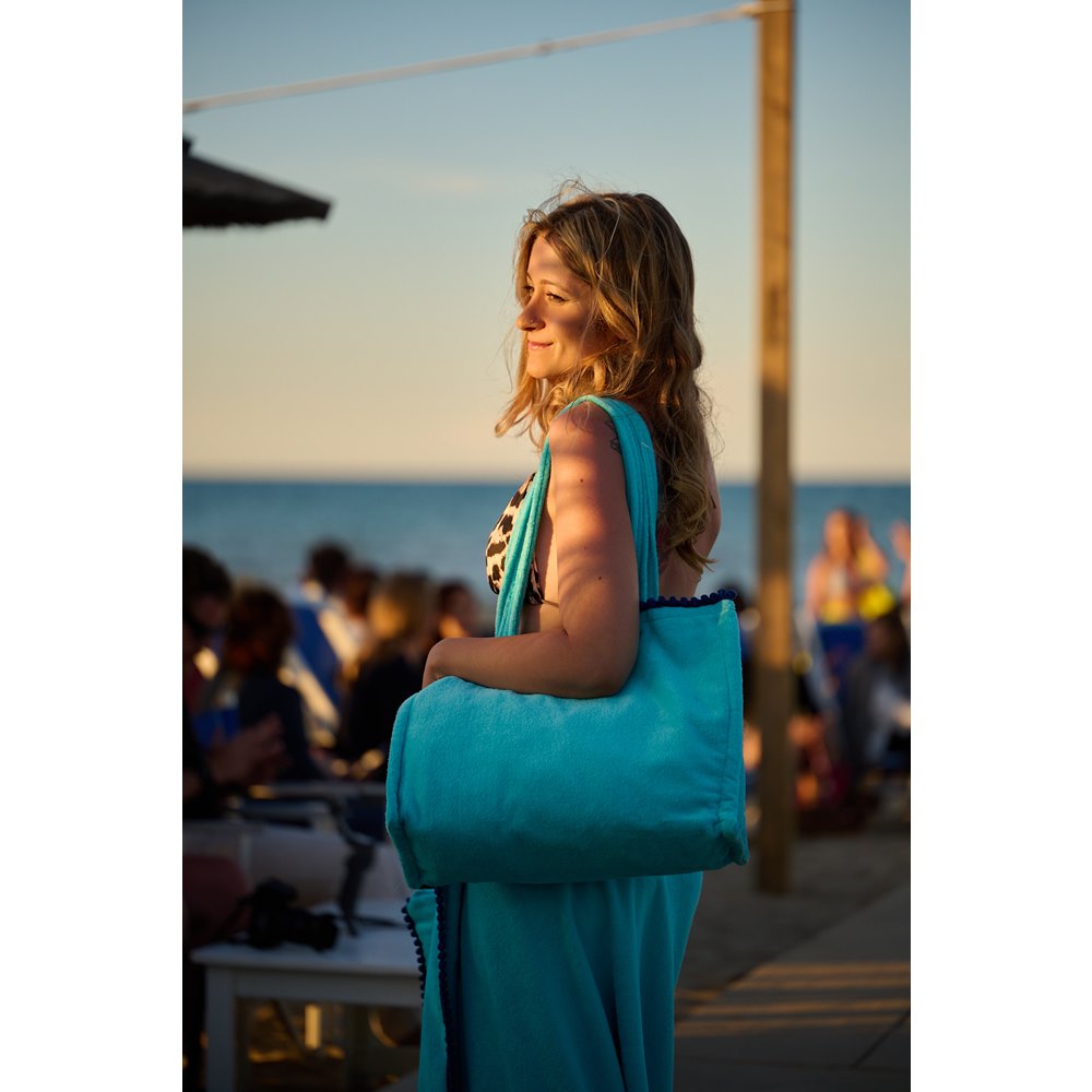 Marisol – Borsa mare velour con pompon azzurro/blu cm 42 x 32 x 16