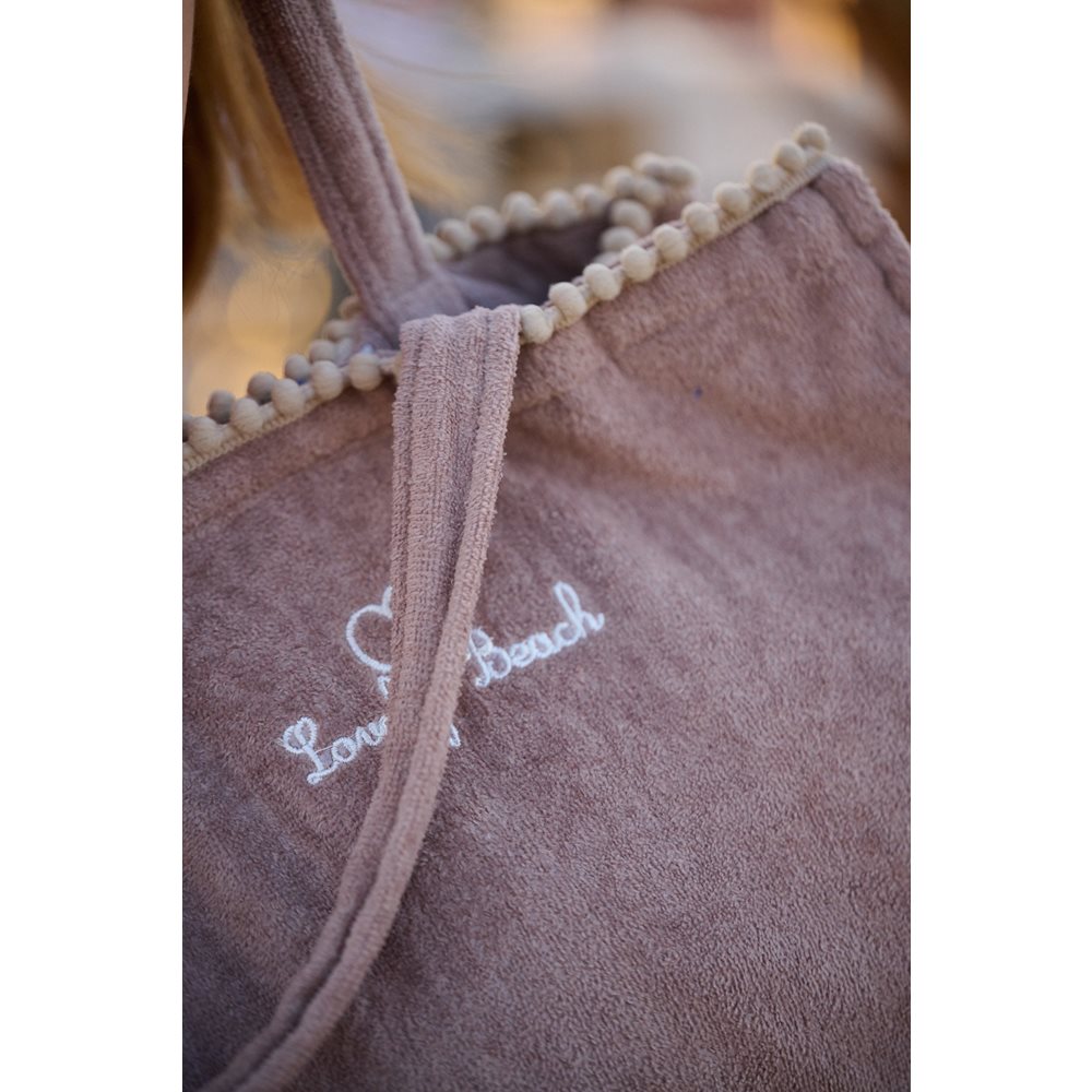 Marisol – Borsa mare velour con pompon tortora/ beige cm 42 x 32 x 16