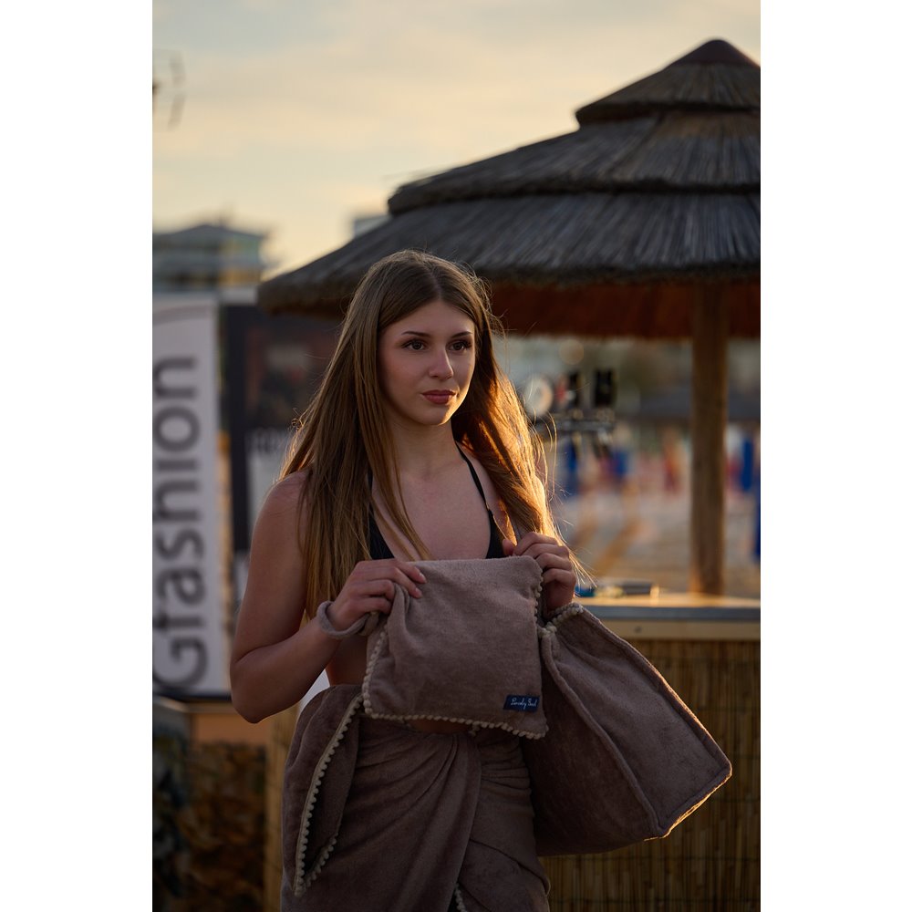 Marisol – Pochette velour con pompon tortora/ beige cm 30 x 26