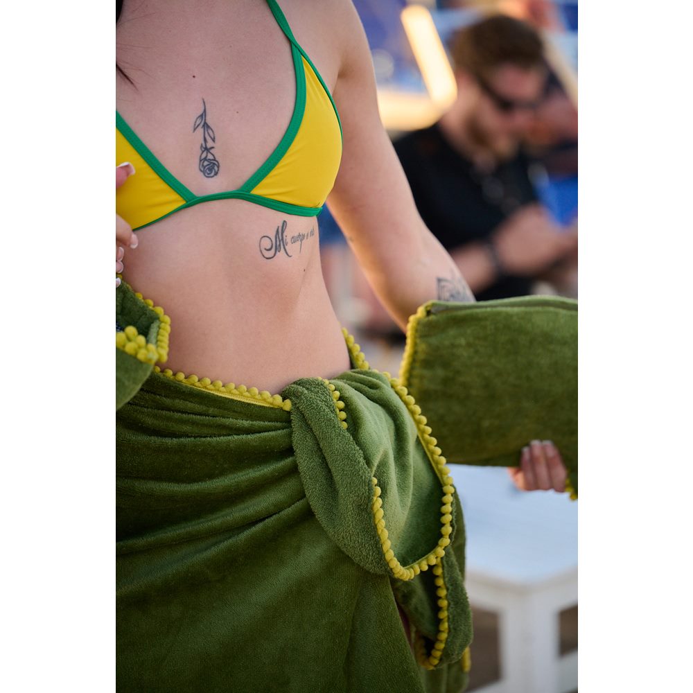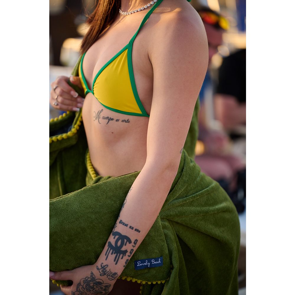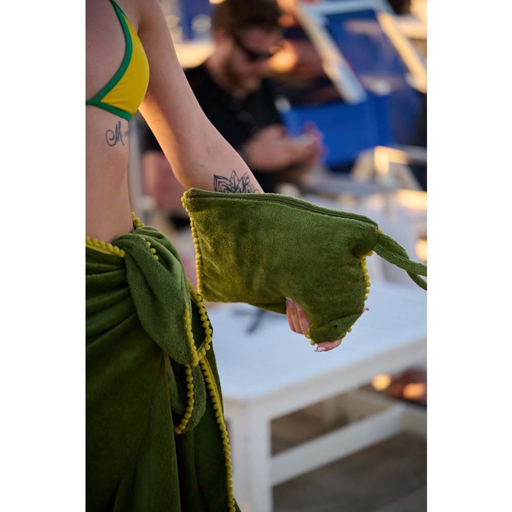 Marisol – Pochette velour con pompon verde militare/verde mela cm 30 x 26