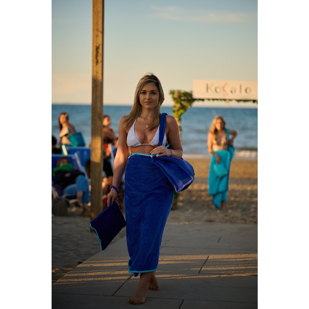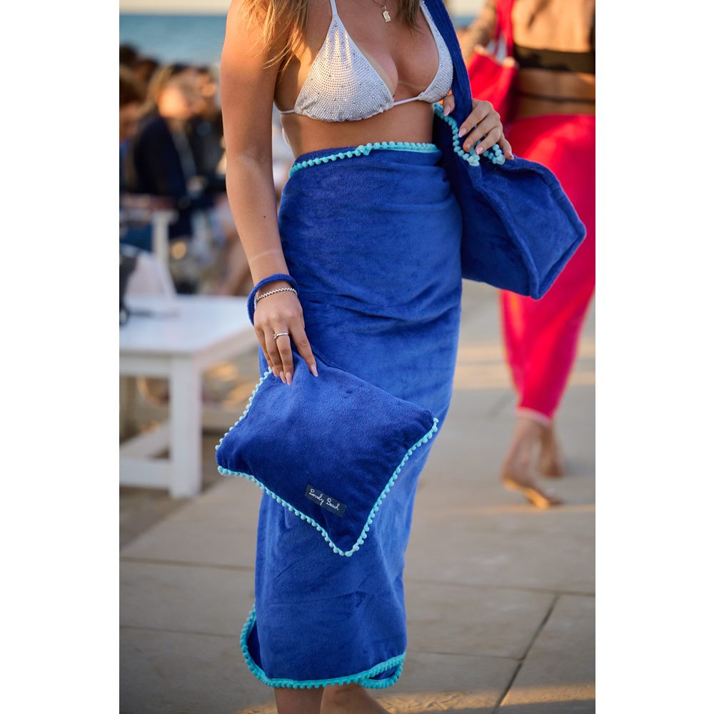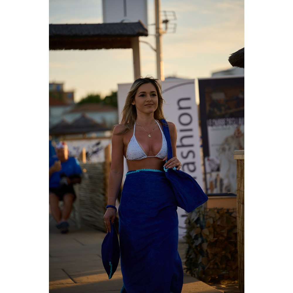 Marisol – Telo mare velour con pompon blu/azzurro cm 90 x 170