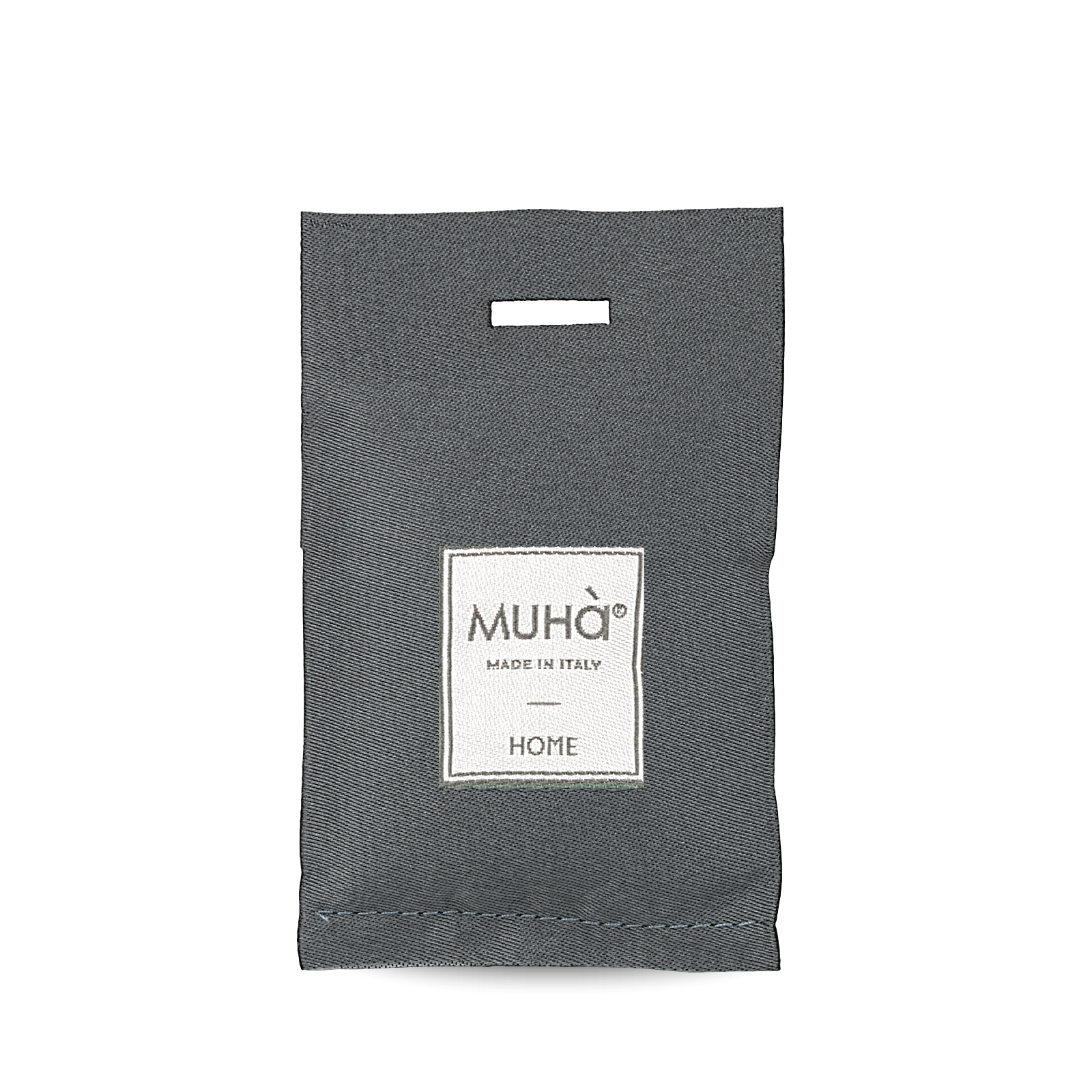 Scopri il sacchetto profumatore Muhà: eleganza grigia e freschezza floreale per cassetti e armadi.