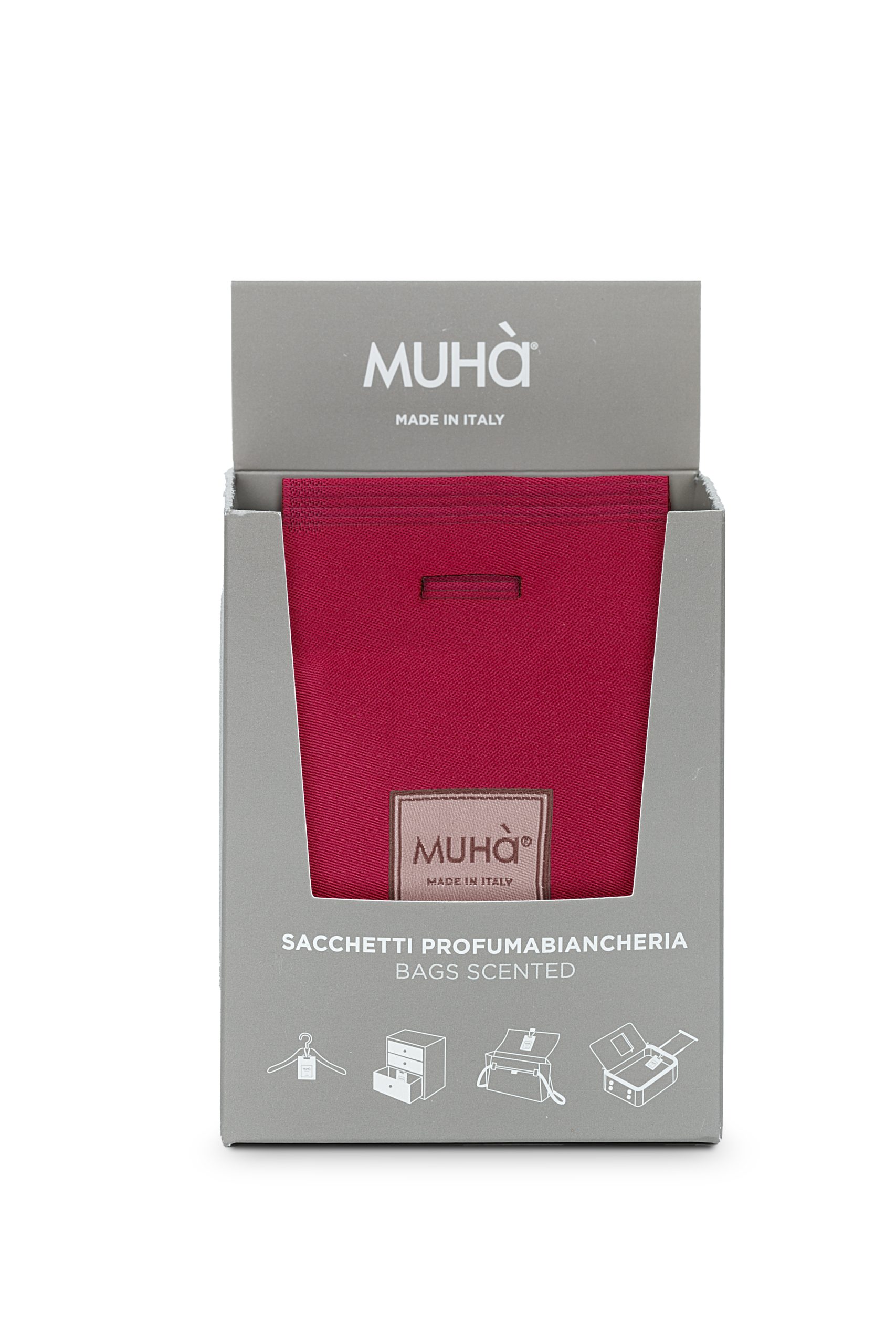 Scopri Muhà, il sacchetto profumatore in lino e cotone rosso, ideale per profumare cassetti e armadi.