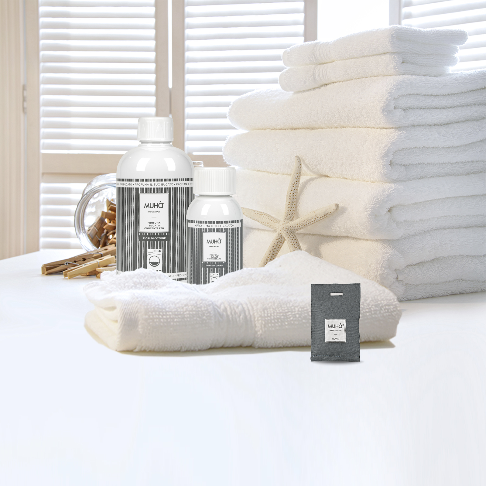 Scopri Muhà, il profumatore per bucato Fiori Di Cotone: freschezza e fragranza in ogni lavaggio!