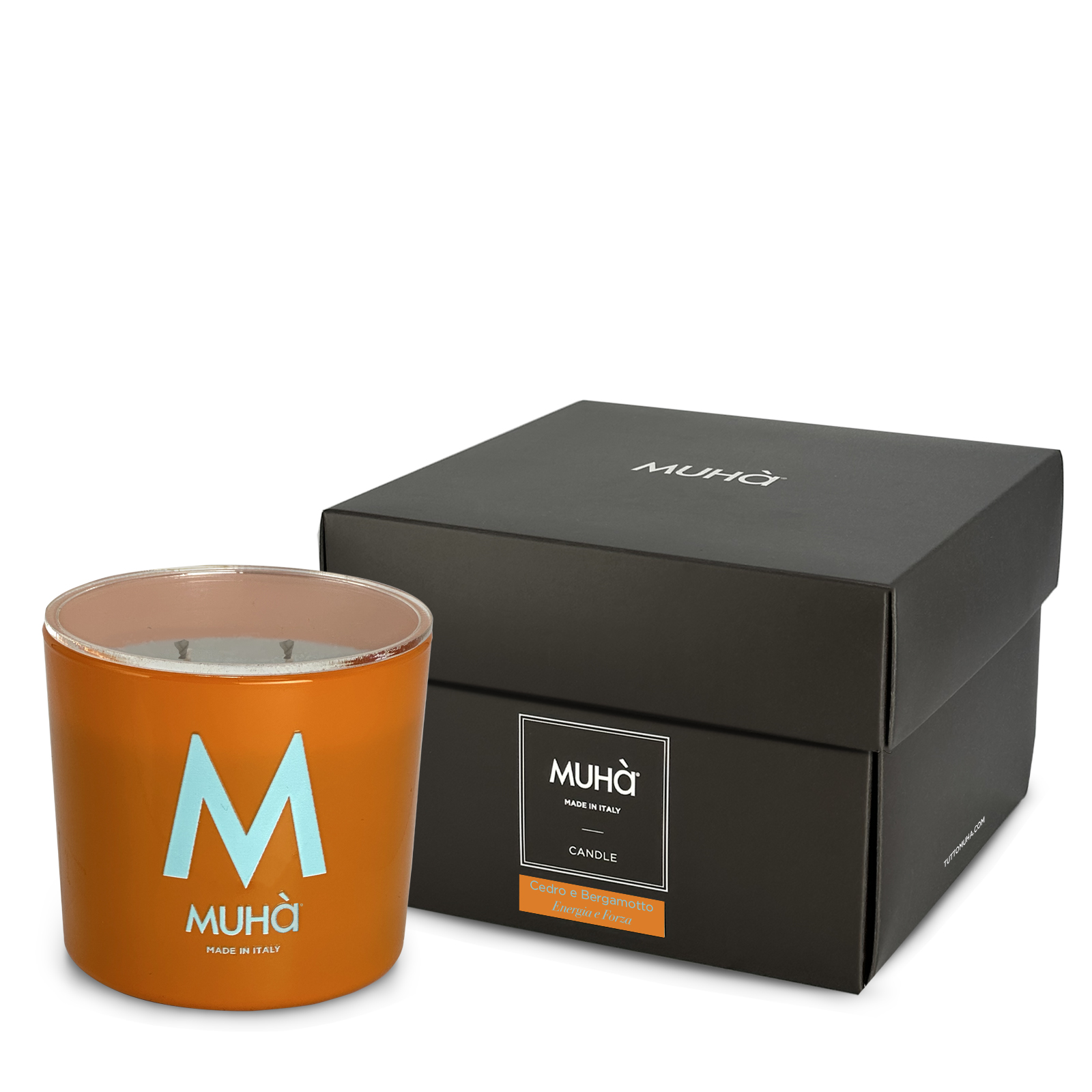 Scopri la candela profumata Muhà: Arancio, Cedro e Bergamotto per un’atmosfera unica.