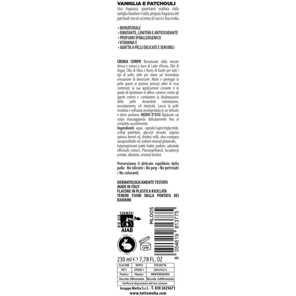 Muhà Lab – Crema Corpo BIO 24H 230 ml Vaniglia e Patchouli