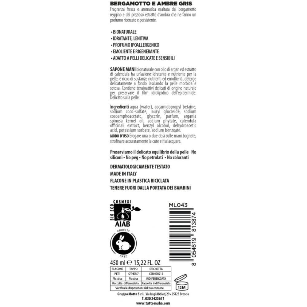 Muhà Lab – Sapone Liquido BIO 450 ml Bergamotto e Ambre Gris