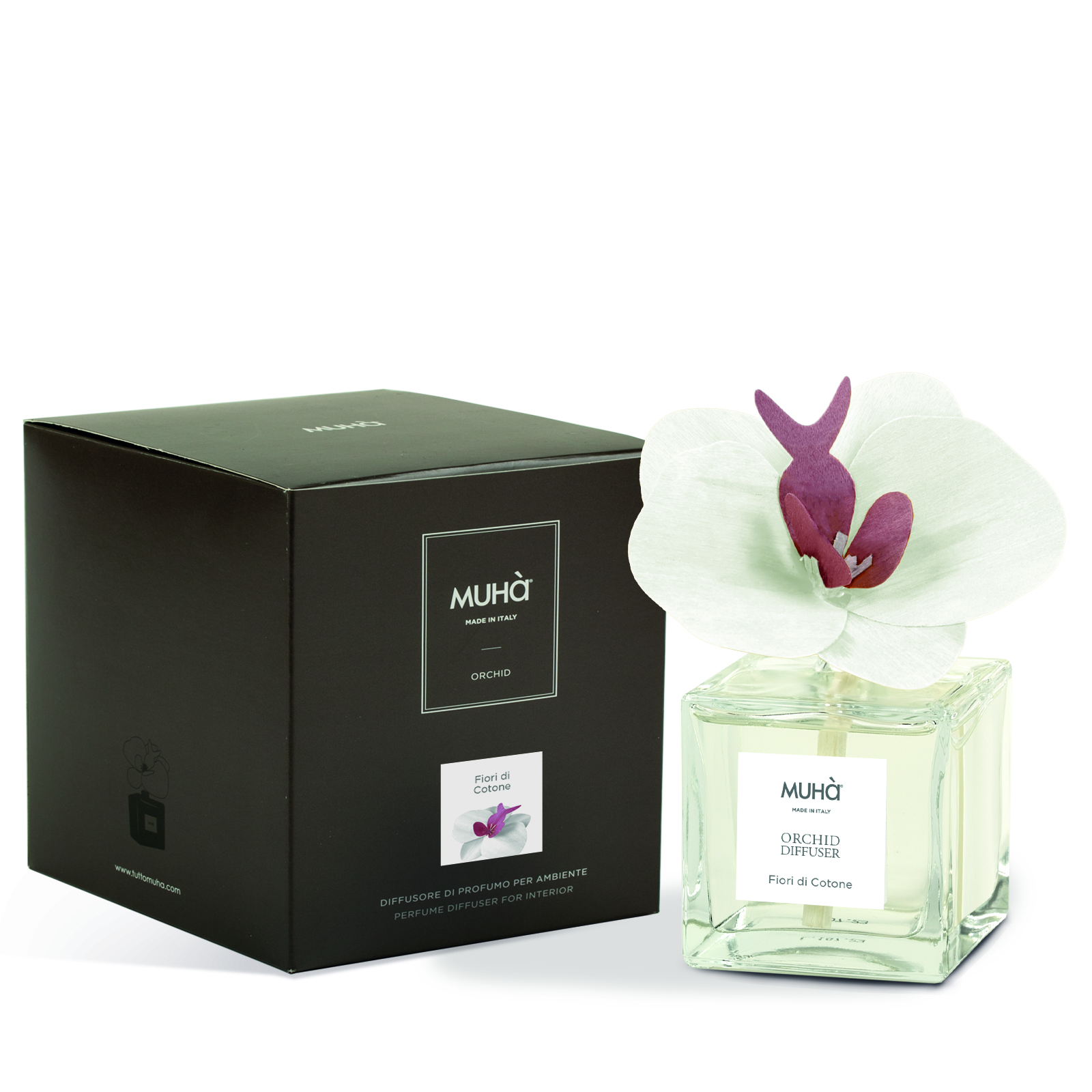 Scopri l’eleganza di Muhà: una fragranza che avvolge i sensi in un abbraccio di freschezza e delicatezza.