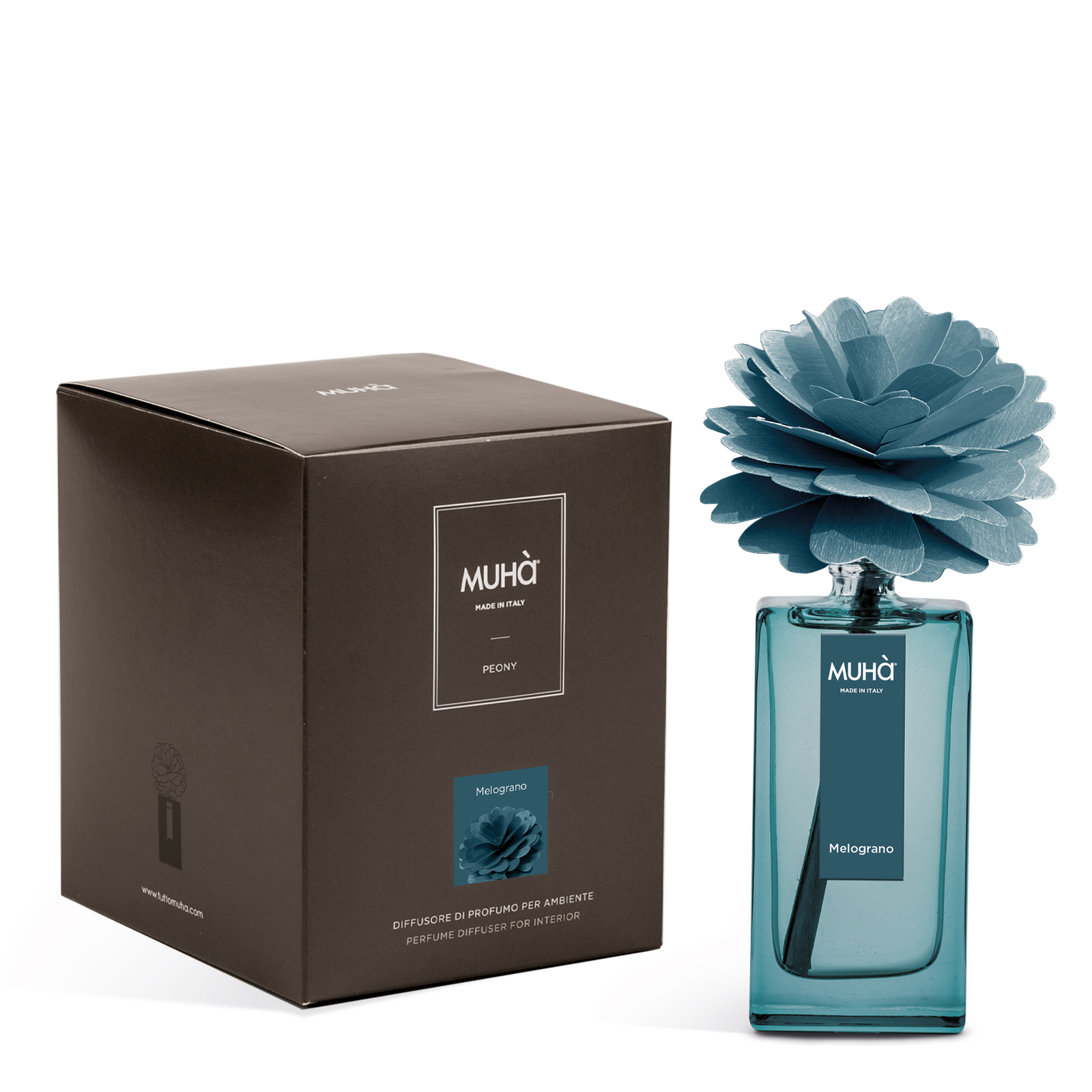Rendi unico il tuo ambiente con il diffusore Muhà Peony Blu: eleganza e freschezza in ogni goccia.