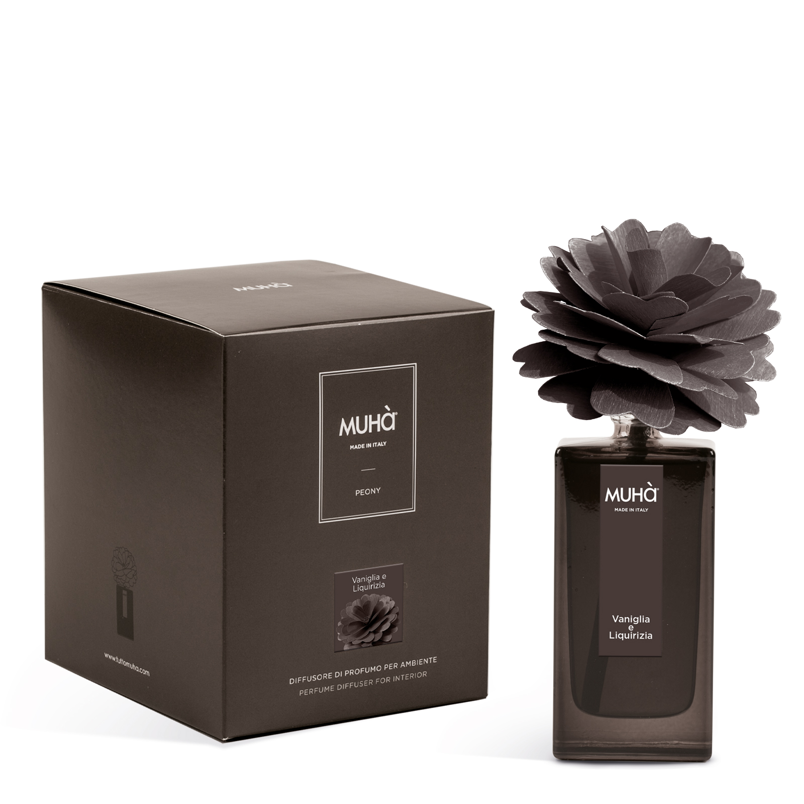 Scopri il diffusore Muhà Peony Marrone: un mix avvolgente di vaniglia e liquirizia per un’atmosfera unica.