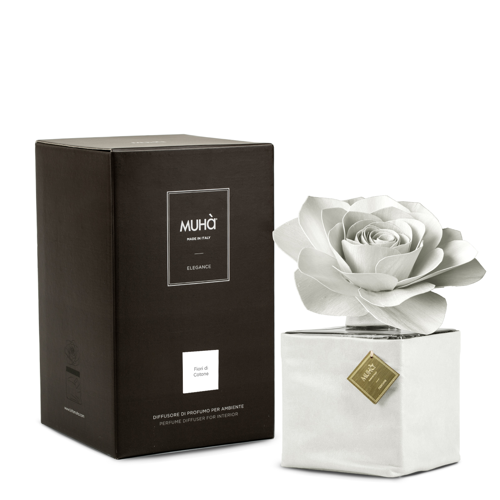 Trasforma ogni ambiente in un’oasi di eleganza con Muhà, il diffusore che avvolge in un abbraccio di fiori di cotone.