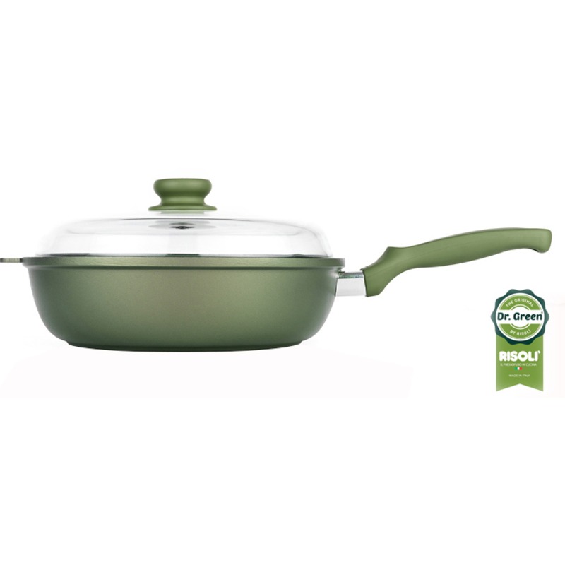 Tutti i prodotti della linea Dr. Green® sono realizzati con l’innovativo antiaderente a base d’acqua Greenstone®, inerte e inorganico, con doppia resistenza all’usura.Grazie al corpo in Alluminio pressofuso ad alto spessore (6mm) la temperatura di cottura si diffonde in maniera omogenea lungo tutta la superficie, ciò consente una cottura ottimale già a fuoco basso che non destabilizza il cibo e ne favorisce lo sviluppo dei sapori.