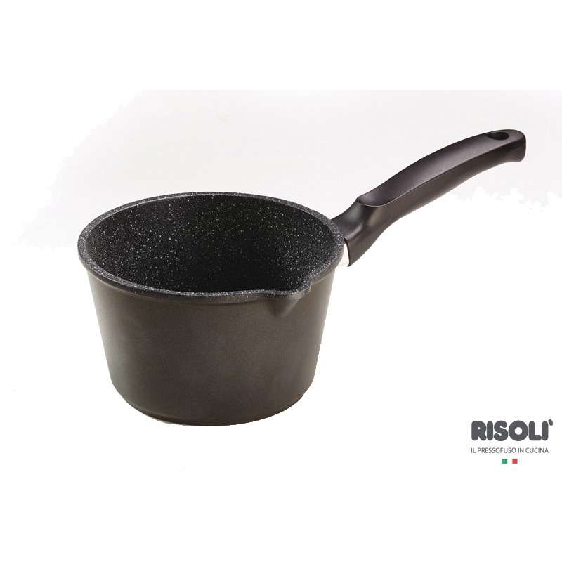 Pentolino Ø 16 in Alluminio Pressofuso ad alto spessore con Manico BK ergonomico. Nuovo Antiaderente HARD STONE ad alta performances – Maggiore durata – Maggiore resistenza – Eco frendly – Senza PFOA e Nickel free