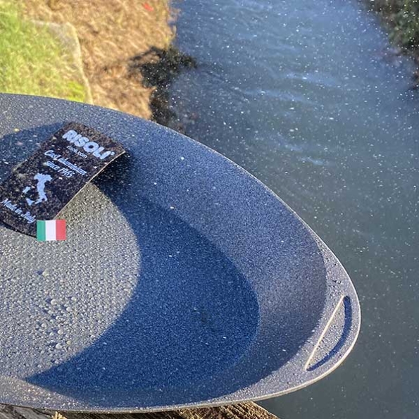 Dopo l’utilizzo pulisci la tua Risolì® con un detersivo delicato sotto acqua tiepida (consigliamo il nostro detergente GreenClean) dopodiché asciugala subito con cura con un panno pulito. Puoi anche usare la lavastoviglie ma a ciclo delicato e possibilmente con detersivi non aggressivi (sconsigliamo le pastiglie). Ricordiamo che la lavastoviglie potrebbe annerire il fondo di alluminio per ossidazione.