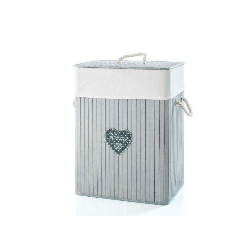 Porta biancheria in legno grigio con tessuto grigio, cm 50 h.