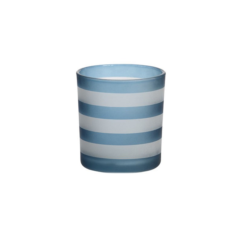 Abbinate questa autentica collezione marittima di accessori per candele, a tocchi di colore che ricreano la perfetta atmosfera costiera. Porta candela sampler caratterizzato da un motivo a righe blu scuro su uno sfondo bianco in vetro semi-satinato.