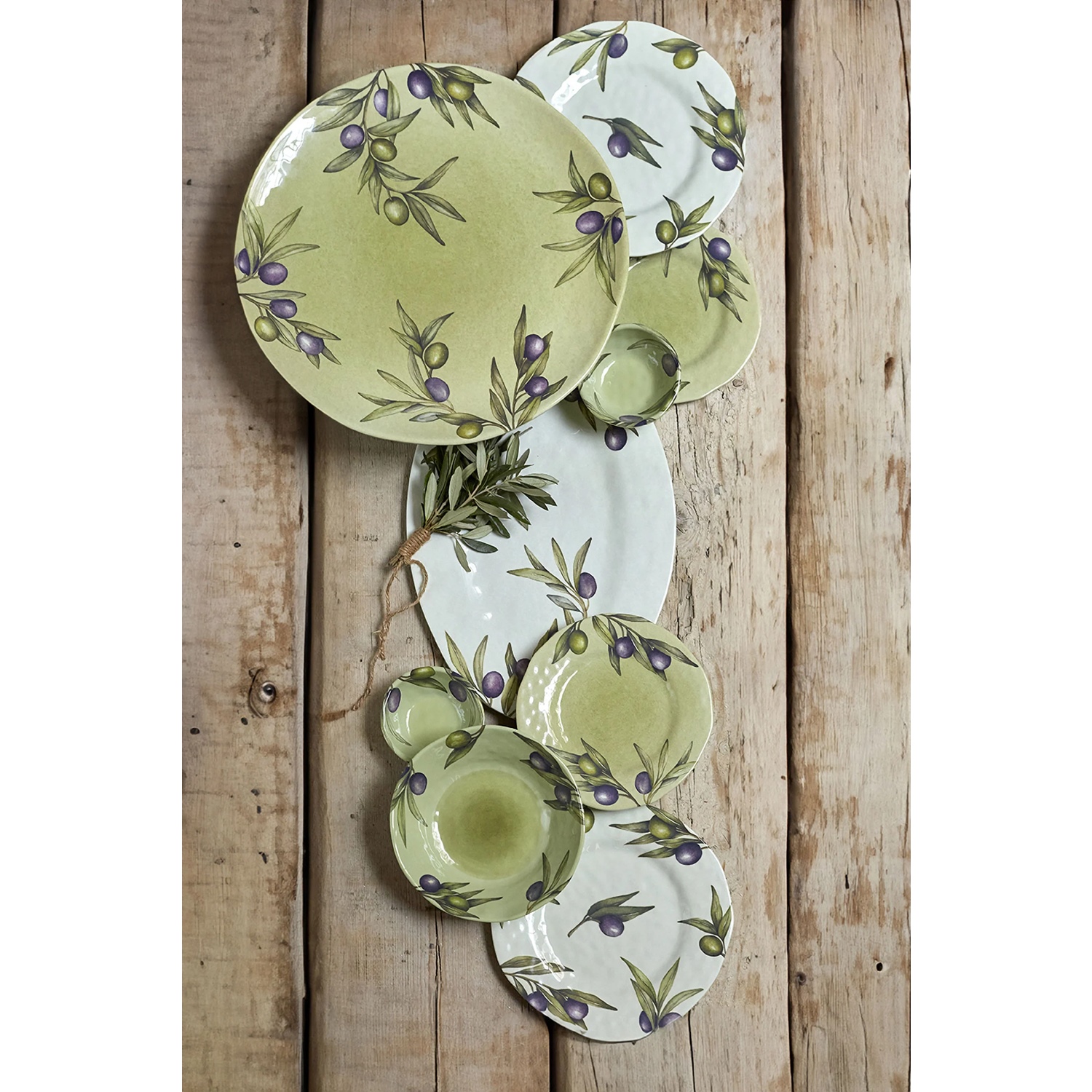 Un acquerello realizzato a mano porta in tavola tutto il sapore iconico del Mediterraneo. Foglie e frutti d’ulivo abbracciano ogni creazione in melamina, dando luogo ad un ritmo sempreverde. Per una tavola distintiva, da vivere anche in outdoor.