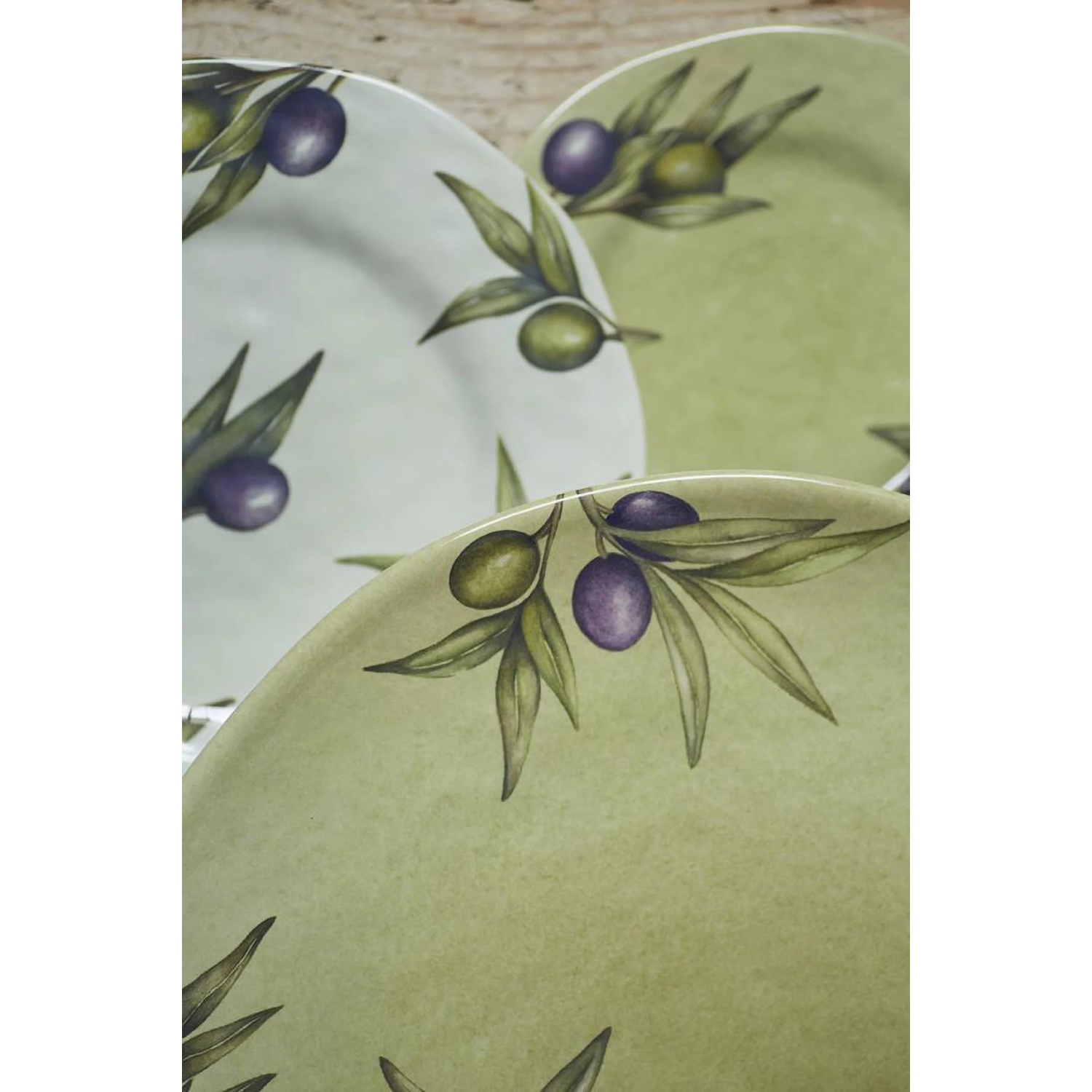Un acquerello realizzato a mano porta in tavola tutto il sapore iconico del Mediterraneo. Foglie e frutti d’ulivo abbracciano ogni creazione in melamina, dando luogo ad un ritmo sempreverde. Per una tavola distintiva, da vivere anche in outdoor.