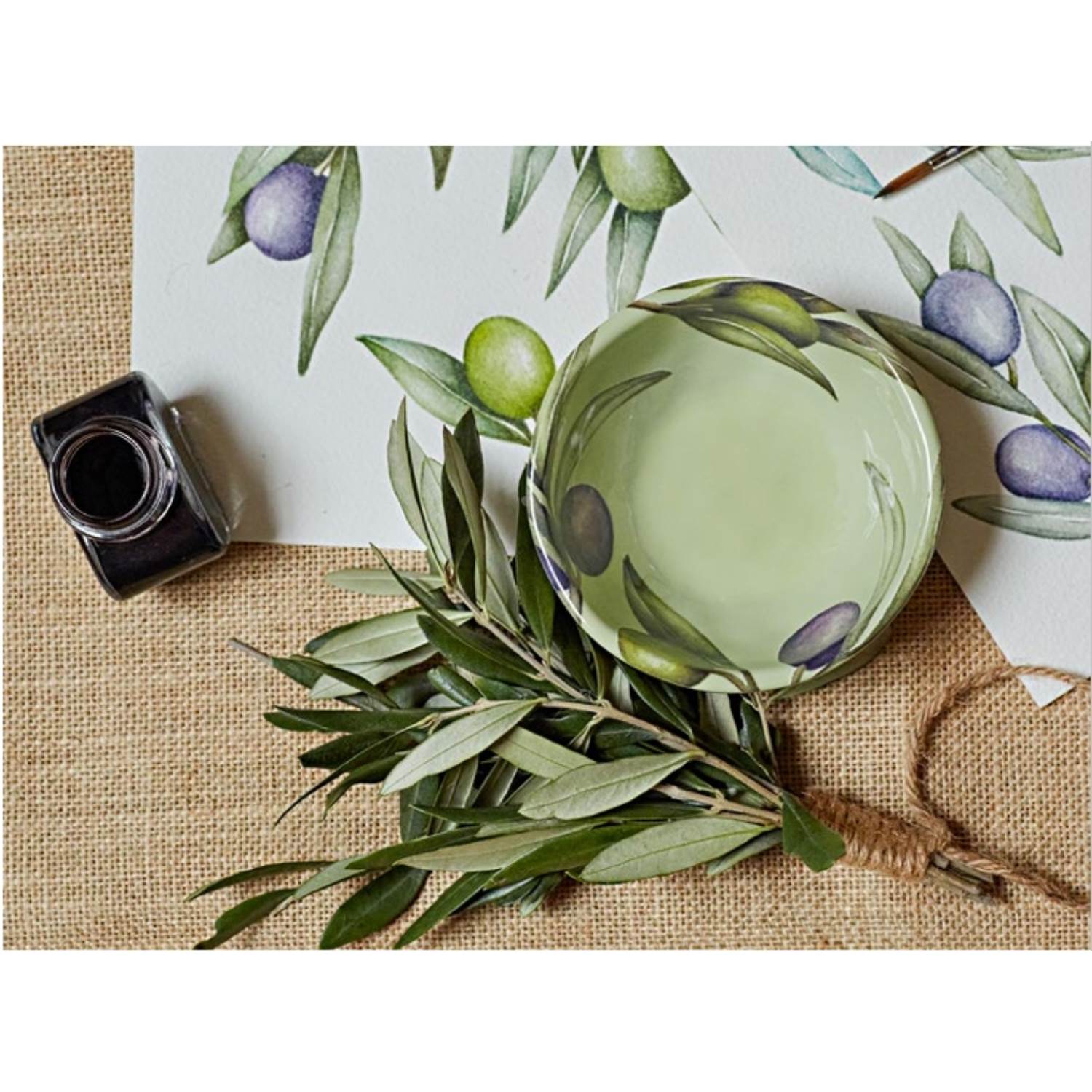 Un acquerello realizzato a mano porta in tavola tutto il sapore iconico del Mediterraneo. Foglie e frutti d’ulivo abbracciano ogni creazione in melamina, dando luogo ad un ritmo sempreverde. Per una tavola distintiva, da vivere anche in outdoor.
