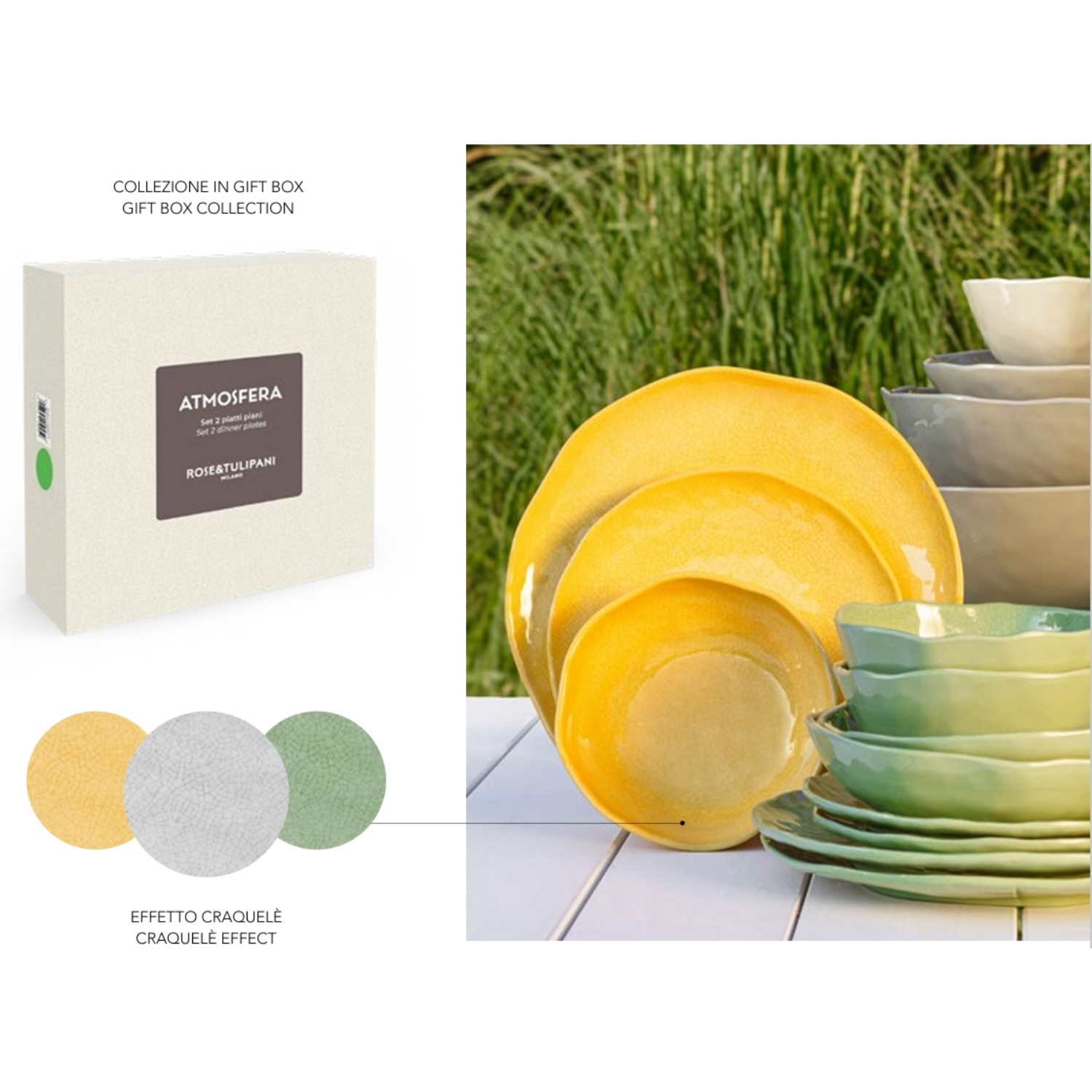 La forme organiche e la bellezza autentica dei colori creano Atmosfera: una collezione in melamina che unisce tatto e visione. I colori, declinati in tortora, verde e ocra, evocano la calda tangibilità della natura, avvolgendo ogni momento a tavola con stile e convivialità.