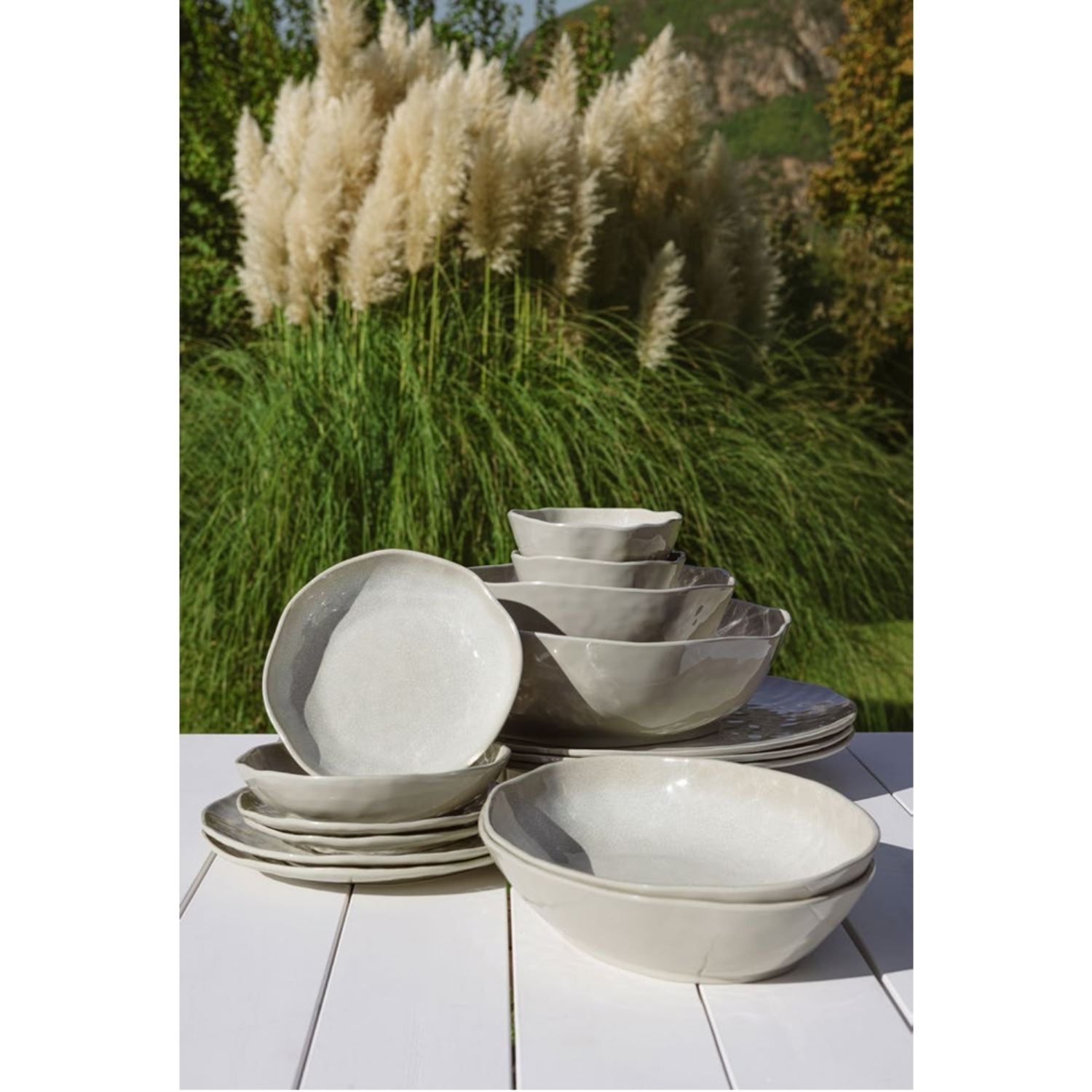 La forme organiche e la bellezza autentica dei colori creano Atmosfera: una collezione in melamina che unisce tatto e visione. I colori, declinati in tortora, verde e ocra, evocano la calda tangibilità della natura, avvolgendo ogni momento a tavola con stile e convivialità.