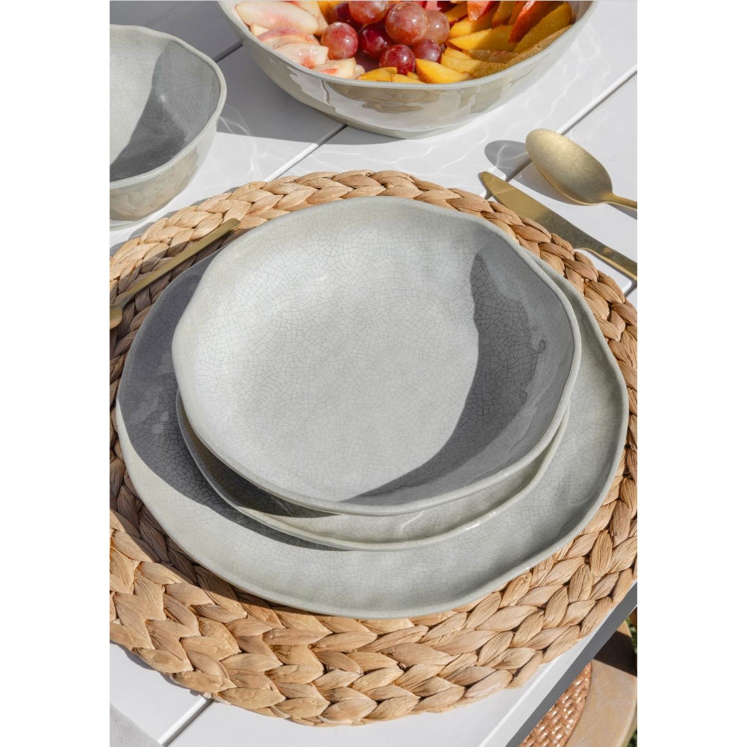 La forme organiche e la bellezza autentica dei colori creano Atmosfera: una collezione in melamina che unisce tatto e visione. I colori, declinati in tortora, verde e ocra, evocano la calda tangibilità della natura, avvolgendo ogni momento a tavola con stile e convivialità.