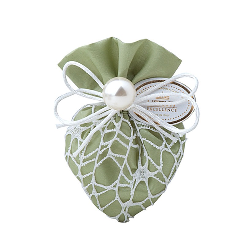 SACCHETTINO CUORE VERDE 10CM C/PERLA