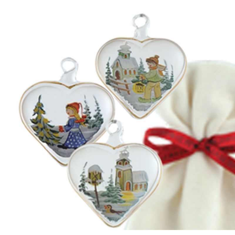 Sacchetto in velluto con cuore in vetro 5,5 cm decorato oro soggetti assortiti