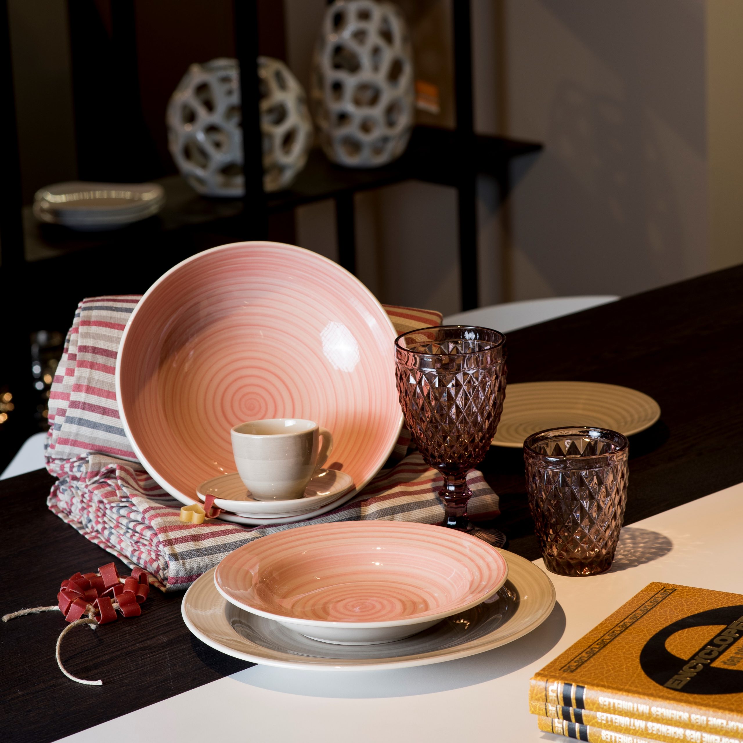 Servizio 19 pezzi tavola in stoneware, piano diam cm 27, fondo diam cm 20, frutta diam cm 19, insalatiera diam cm 23.