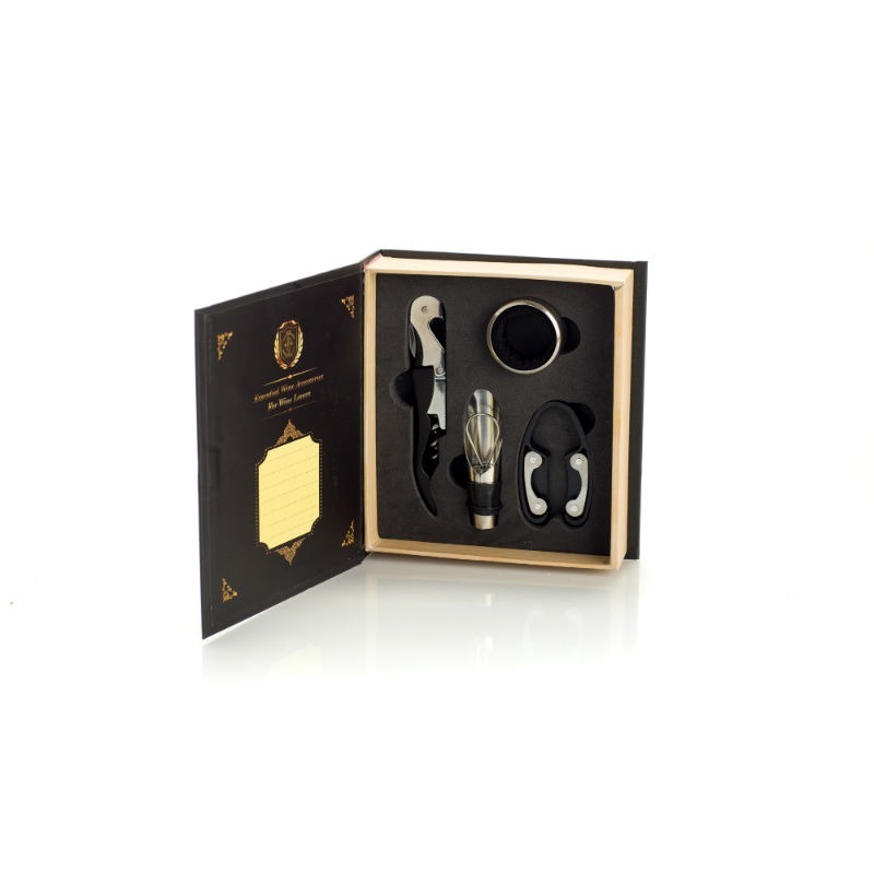 SET VINO 4PZ IN SCATOLA LIBRO – Una proposta unica e curata nei dettagli, pensata per sorprendere e valorizzare ogni occasione speciale con stile ed emozione.