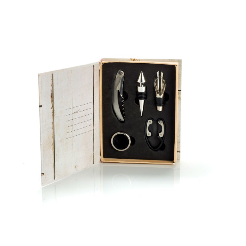 SET VINO 5PZ IN SCATOLA LIBRO – Una proposta unica e curata nei dettagli, pensata per sorprendere e valorizzare ogni occasione speciale con stile ed emozione.