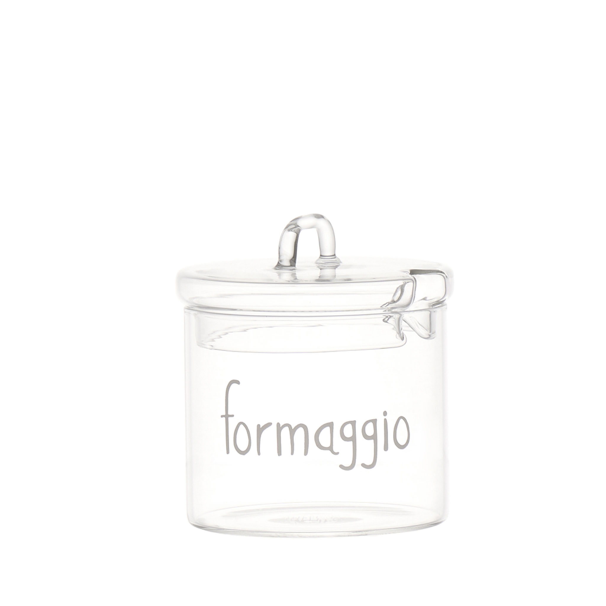 Barattolo in vetro da 9 cm, progettato per la conservazione del formaggio. Struttura resistente e design funzionale.