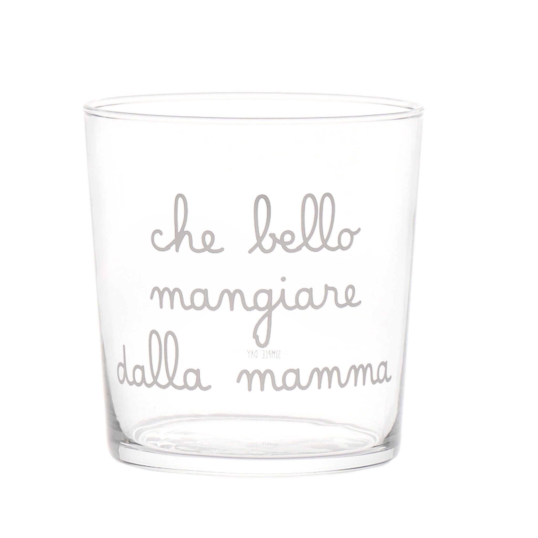 Il bicchiere “Che Bello Mangiare Dalla Mamma” della linea Simple Day ha una capacità di 35 cl, rendendolo adatto per diverse bevande. Il design semplice e lineare facilita l’impiego in contesti informali e quotidiani. Realizzato con materiali di qualità, questo bicchiere è pensato per garantire resistenza e durata nel tempo.