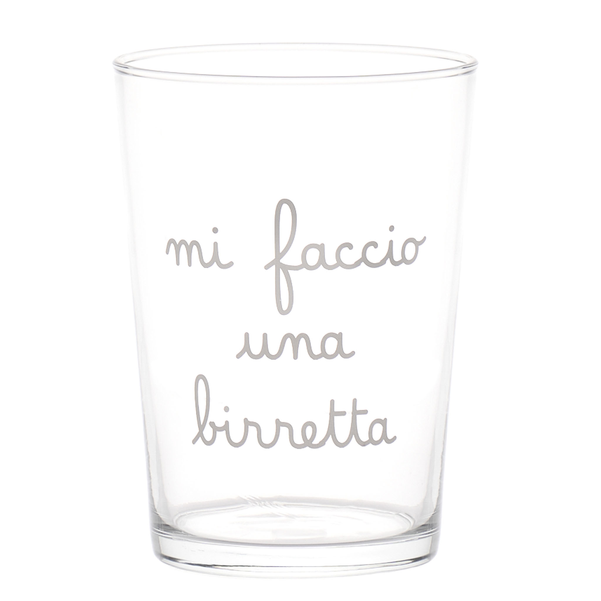 Il bicchiere Mi Faccio Una Birretta della linea Simple Day ha una capacità di 50cl, progettato per un uso quotidiano e funzionale in ambito tavola.
